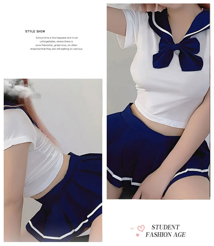 ❤Сексуальное и сексуальное нижнее белье для школьниц с матросским воротником и галстуком-бабочкой спереди. Юбка имеет липучку для регулировки бюста и быстрого включения/выключения. Спандекс. Ткань высокого качества мягкая, растягивающаяся и удобная.