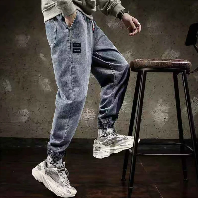 Джинсы-шаровары, мужские брюки, трендовые мужские уличные штаны для бега, уличные свободные брюки, повседневные удобные потертые джинсы, новинка 2021