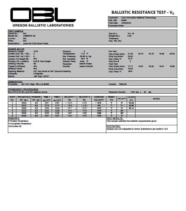 Керамическая и ламинированная опорная пластина UHMW-PE для защиты Rilfe, СВМПЭ/Арамид для защиты пистолета