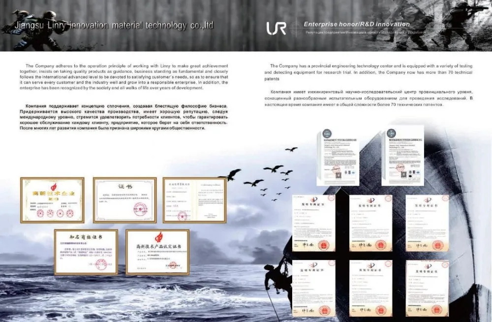 Технология LinryЯвляется ведущей высокотехнологичной компанией по баллистической защите, расположенной в чжэньцзяне, Китай. Он занимает 80000 квадратных метров и владеет четырьмя стандартными цехами в национальном высокотехнологичном парке города чжэньцзян, который специализируется на исследованиях и разработках, производство и продажа инновационных сверхвысокомолекулярных полиэтиленовых (СВМПЭ)/арамидных Композитных тканей и линейки готовой продукции, включая различные пуленепробиваемые жилеты, баллистический шлем, жесткие бронированные пластины, Мягкие бронированные панели, Баллистические щиты, бомбочки/Баллистические одеяла, бронированные панели транспортных средств и различные средства против беспорядков, средства против ударов/порезов. Мы можем предоставить широкий ассортимент военных и полицейских принадлежностей по доступной заводской цене.