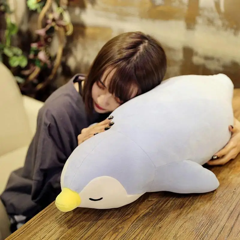 Милая мягкая подушка в виде пингвина: прекрасные особенности лица и глаз, без пуговиц или пластмассовой вышивки. Плюшевые игрушки Полностью мягкие и не имеют жестких деталей. Подушка в виде пингвина имеет милое обтекаемое тело, прекрасный желтый рот и пару плавников. Тело не переполняется, что делает его очень мягким и приятным.