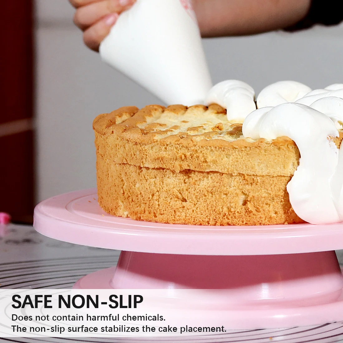 2. Мы предоставляем только лучшее. Поэтому этот вращающаяся подставка для торта изготовлен из высококачественного пищевого пластика. Безопасен в использовании и не содержит вредных химикатов. Нескользящая поверхность обеспечивает устойчивую платформу для украшения торта.