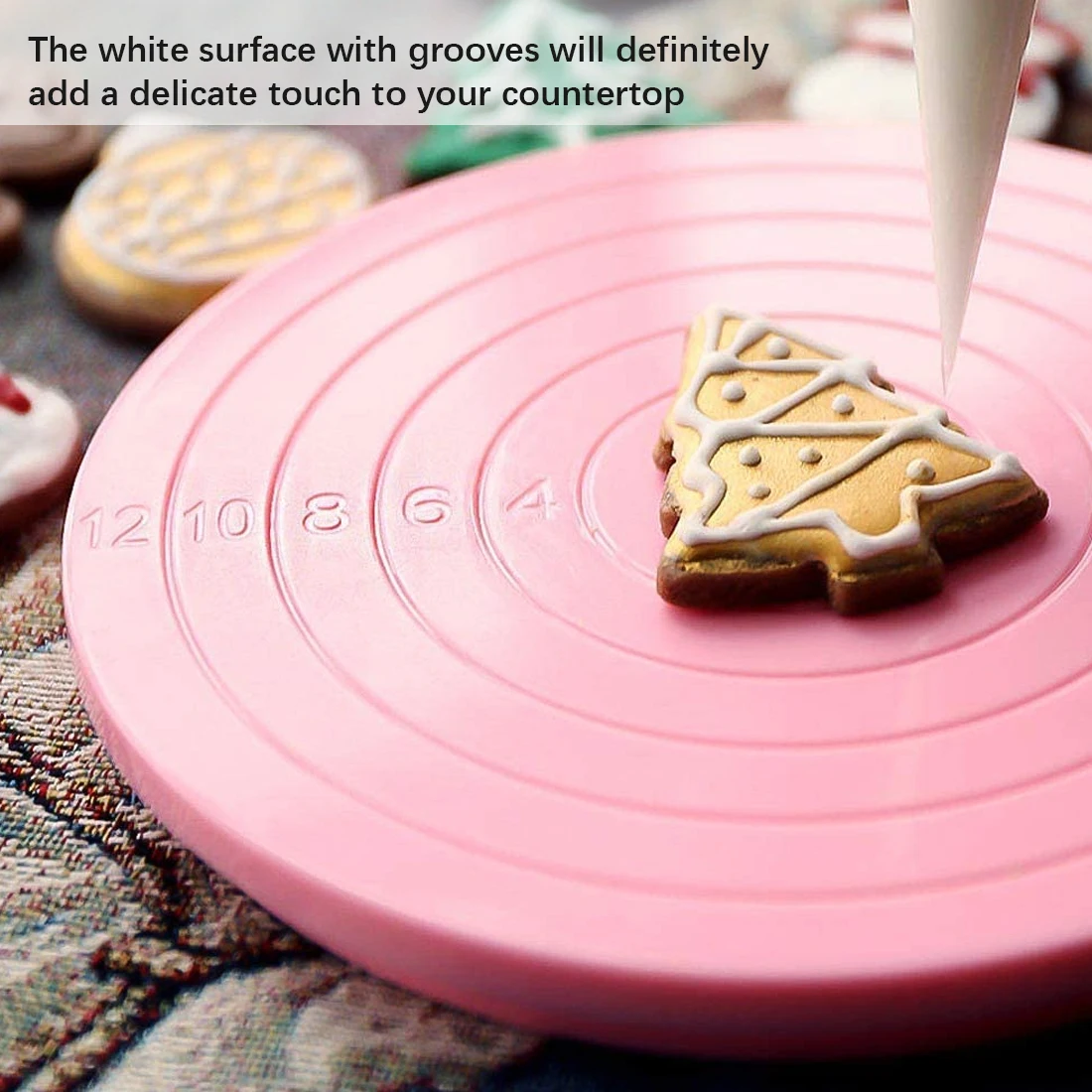1. Эта вращающаяся Вертушка для торта придает идеальную приподнятую поверхность для идеального украшения! Белая поверхность с желобками точно добавит нежного прикосновения к вашей столешнице