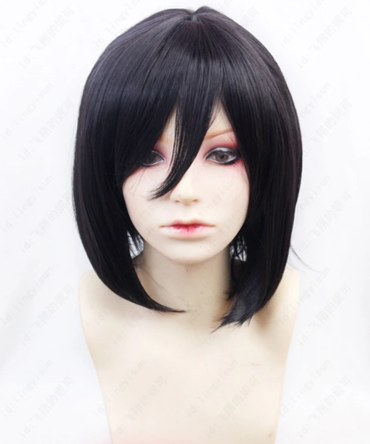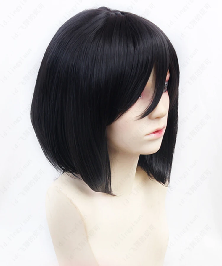 Mikasa Ackerman Косплей парики атака на Титанов Косплей Черный прямой боб парик термостойкие синтетические волосы парики + парик шапка
