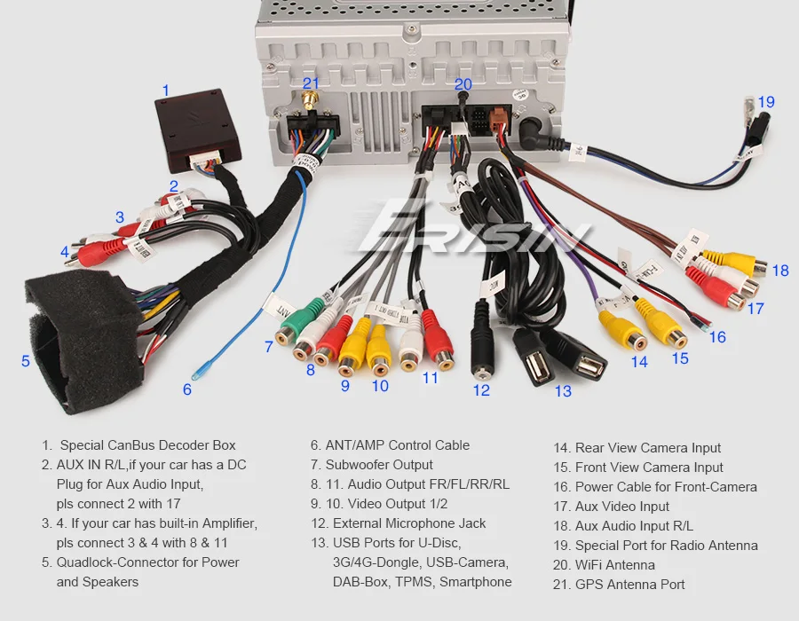 -Функция: может быть подключен к U-Disc, 3G/4G донгл, CarPlay ключ, TPMS-устройство, DVR-камера, DAB + коробка, смартфон и т. Д.