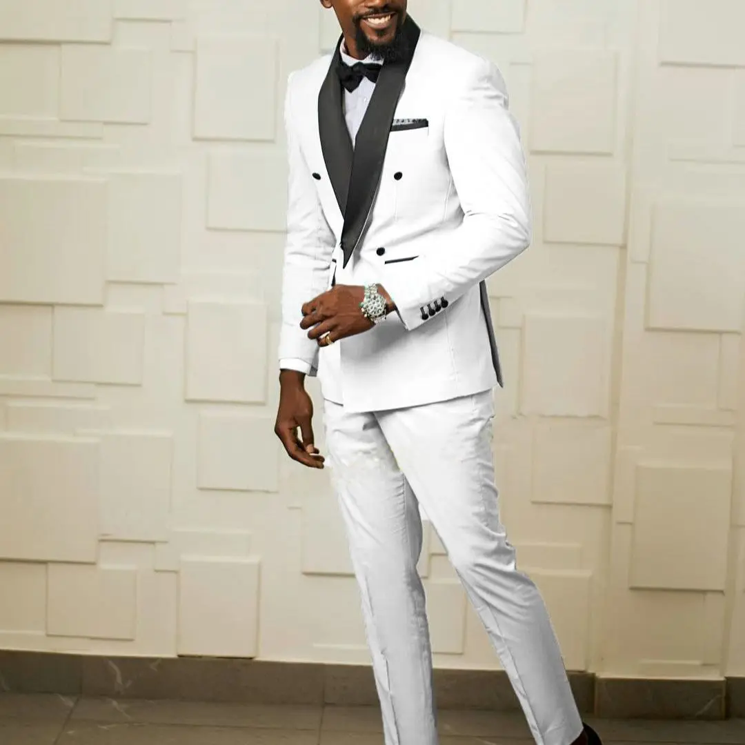 Последний дизайн пальто брюки Белый двубортный смокинг костюмы на выпускной, свадьбу для мужчин приталенный Блейзер Куртка на заказ костюм жениха Terno