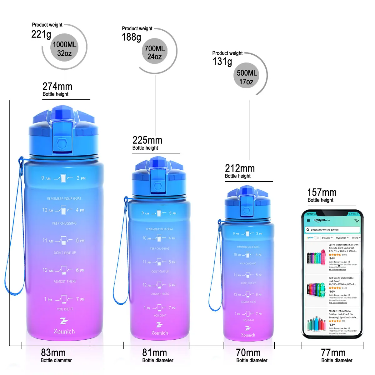 Operating temperature: -10℃~110℃ Healthy Material: TTRITAN Co-polyester, BPA/BPS/BPF Free, PP 05, Food-grade Silicone Healthy Material :Tritan Co-polyester, PP 05, Food-grade Silicone, Dishwasher Safe 100% BPA Free, Food grade silicone seal parts. (add alternative) Durable Lanyard for Easy Carrying Fast Water Flowing Spout No Peculiar Smell Quick Access & One-Hand Operation Convenient. only 1-click for easy access to your water. And the unique lock design prevent to unexpectedly leak. Distinctive patented design avoid your bottle same with other general product. Cleaner Drinking.Protective spout cover helps keep out gross dirt and germs. Its practical measure markings will remind you how much you drink up. (NOTE:except black colour because it is special colour) The best gift for boys, girls, women and men!