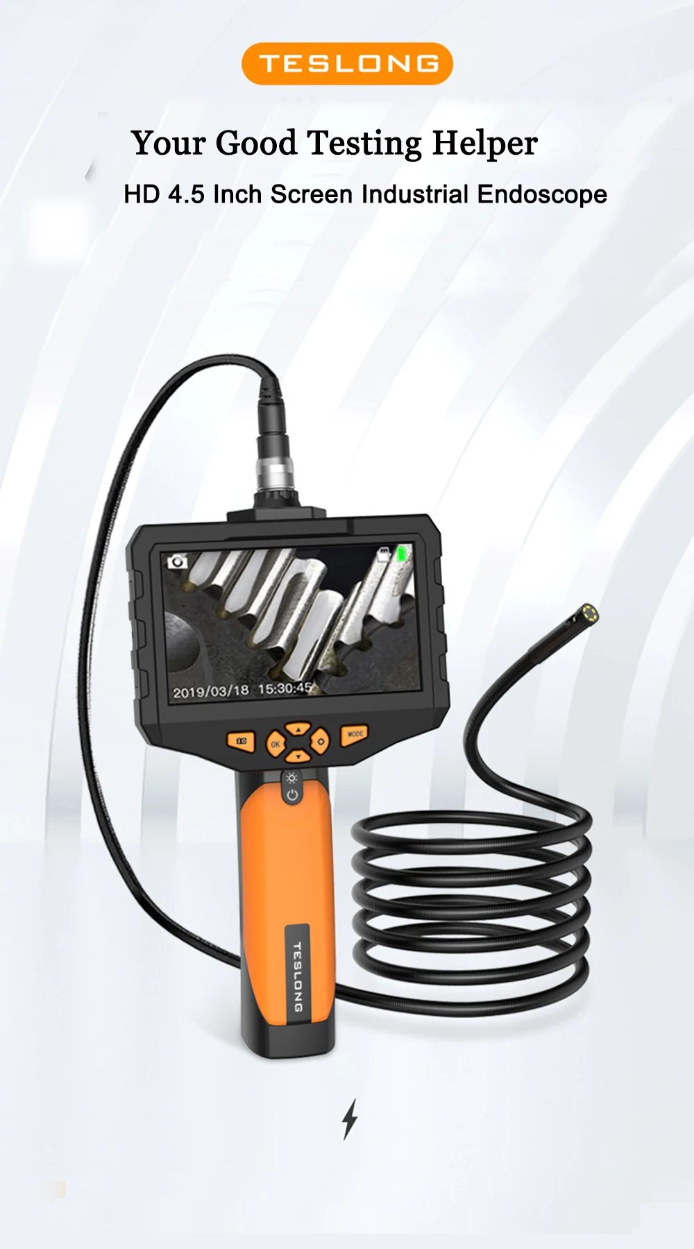 Монитор: Тип экрана: 4,5 дюймов Цвет ЖК-дисплей Разрешение: 854*480 пикселей (QVGA) Вращение: 180 ° Разрешение записи видео: 1280*720, 1920*1080 (пикселей) Разрешение захвата изображения: 1920*1080 (пикселей) Языки меню: английский, французский, испанский, китайский, японский, немецкий, итальянский, русский Порт: Порт удаленного подключения, USB, слот для tf-карты 32G TF SD карта Камера: Диаметр: 7,6 мм/5,5 мм/3,9 мм/14,5 мм опционально Диаметр вала: 7 мм/5 мм Длина вала: 100 см/300 см/500 см (полу-жесткий кабель) Разрешение: 2,0 мегапикселей Угол обзора: 70 ° Глубина поля: 30 мм-60 мм Светильник источник света: 6 Регулируемых светодиодов высокой интенсивности Прочее: Светодиодный светильник вспышки: 1 Вт CREE светодиодный Рабочая температура: от 32 до 113 °F (от 0 до 45 °C) Мощность: 2600 мАч литиевая батарея (в комплекте) Срок службы батареи: 3-4 часа