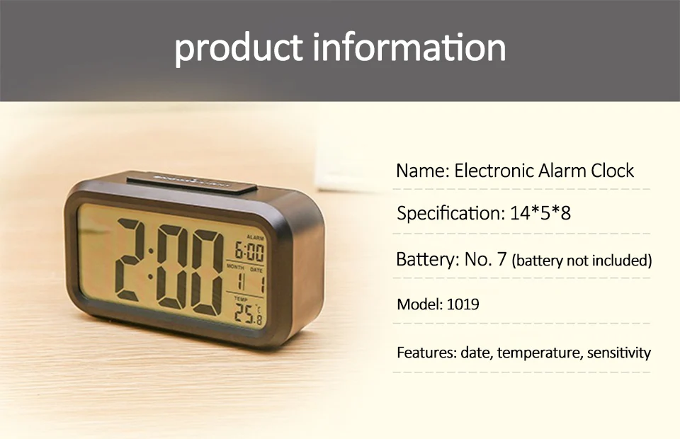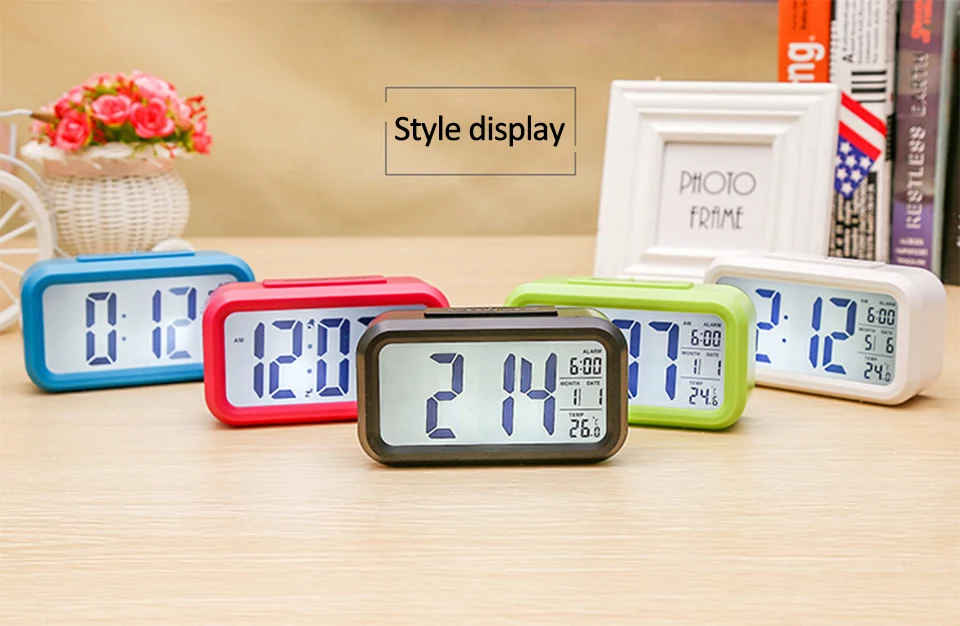 5. Мягкий синий или белый фон Ночной светильник, вечный календарь, 24 часа/12 часов преобразования.
