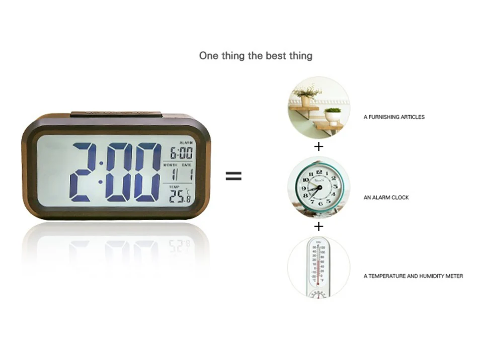 2. Функция "Умный светильник": технология "Умный светильник" использует мягкий светильник, чтобы видеть время ночью, но не бликует и не влияет на сон. Что еще более важно, это экономит электричество, и умный светильник можно свободно Переключить.