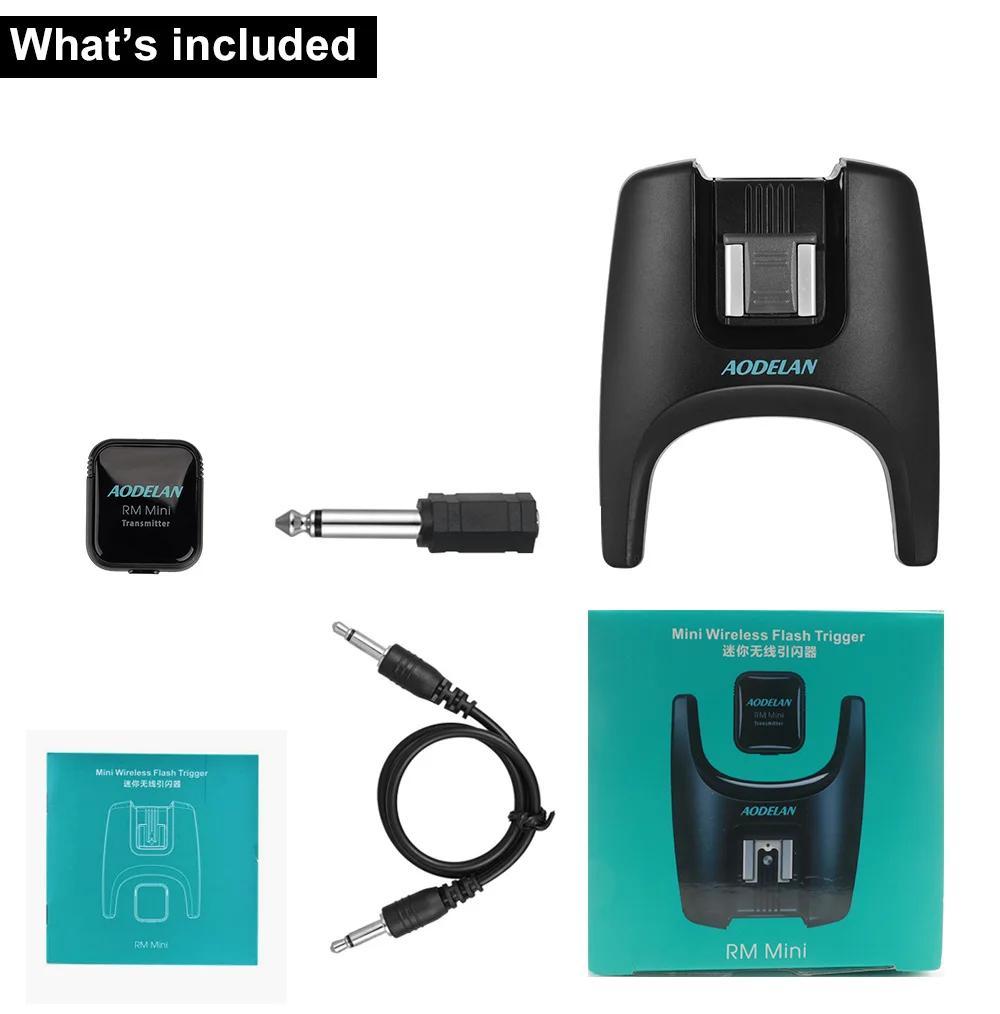 Беспроводной мини-триггер Aodelan состоит из передатчика и приемника для беспроводного триггера. Приемник может быть подключен к вспышке через горячий башмак или порт синхронизации, с тем чтобы осуществить ручной режим отключения вспышки. Передатчик поддерживает запуск одного контракта, поддерживает беспроводное отключение и запуск вспышки через горячий башмак камеры, с кабелем синхронизации ПК (опционально), вспышка также может быть запущена, для реализации проводного/беспроводного дистанционного управления спуском затвора, Управление несколькими вспышками одновременно.