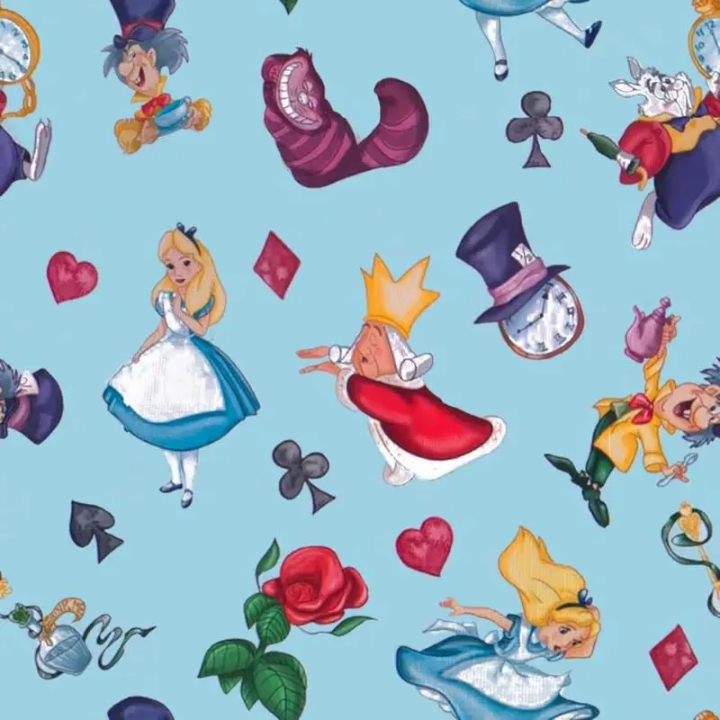 100% Органическая хлопковая ткань, на Поплиновой основе, на небесно-синем фоне и в сочетании с классическими персонажами, такими как Алиса, белый кролик, пятнышко сердец. Вы можете использовать эту ткань для выполнения любого вида ручной работы или работы, обивки любых предметов из вашего дома, изготовления штор, листов, подушек или даже пижам, как для самых маленьких, так и для взрослых. Будучи тканью из высококачественного хлопка, она дает вам возможность сделать любой вид масок. Рекомендации по стирке: ручной или машиной при кадровой частоте 60 ° не использовать какими-либо химическими веществами, так как это может ухудшить ткань. Grammage: 115 гр./м2 ширина ткани: 140 cms