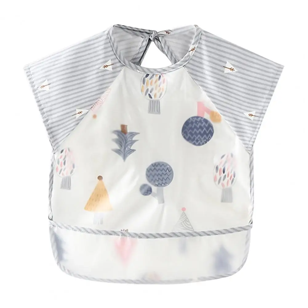 Children Waterproof Short Sleeve Feeding Bib Baby Anti-Wearing Smock with Pocket