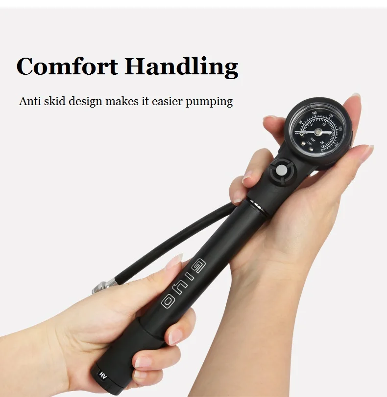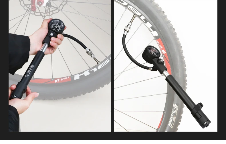 ** Эргономичная ручка, легко захватывает и накачивает** Стандартный насос для ударной вилки MTB | Шина клапана Schrader/Presta** Труба насоса и клапан Schrader могут свободно вращаться и использоваться под разными углами** Нажмите кнопку выпуска воздуха один раз, чтобы выпустить 2-3psi и легко настроить значение воздушного прессаОбразец