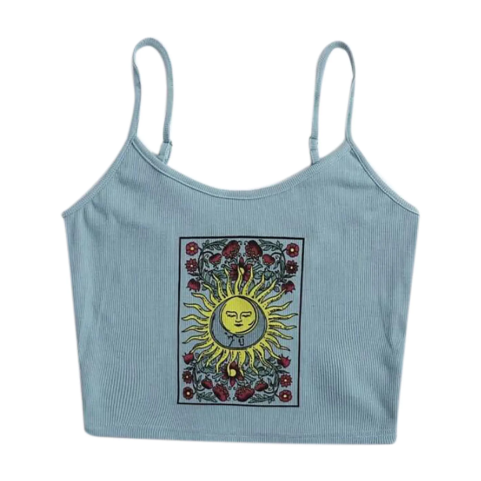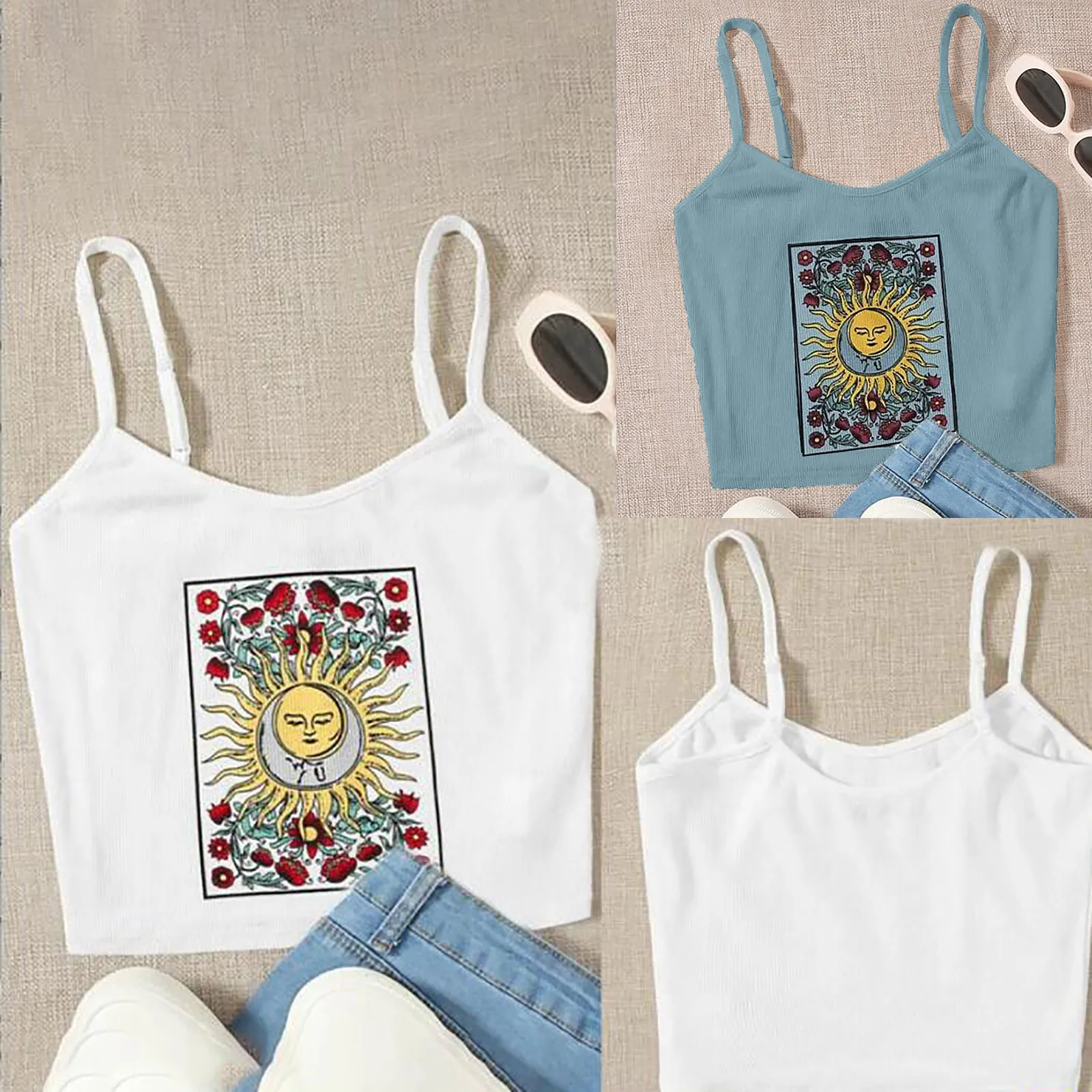 Женские топы в стиле ретро с принтом розы и солнца, модная блузка с v-образным вырезом на бретельках
