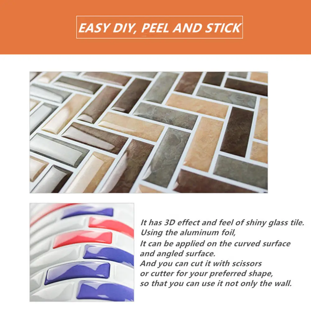 Информация о продукте. * Pruduct Название: домашняя декоративная мозаичная плитка для ванной комнаты, кухни, Съемные 3D обои, наклейка из фольги, сделай сам * Материал: алюминиевый файл, эпоксидная смола и ПЭТ. * Размеры: 29,3 см X 21,2 см (11,5 "X 8,3" дюймов)/лист * Установка метода: легко наклеить (съемный) * Стиль: 3D плитка Особенности Beasutile Is Он имеет 3D эффект и ощущение блестящей стеклянной плитки. Используя алюминиевую фольгу, этот продукт прочнее, чем обычный лист ПВХ. Его можно наносить на изогнутую поверхность и угловую поверхность. И вы можете отрезать его ножницами или резцом для предпочтительной формы, чтобы вы могли использовать его не только стену. Простая и гибкая установка Легкая конструкция: может быть нанесена на изогнутую поверхность и угловую поверхность. И вы можете отрезать его ножницами или резцом для предпочтительной формы, чтобы вы могли использовать его не только стену. Никаких специальных инструментов не требуется. Это стикер продукта, так что вы можете прикрепить и отсоединить несколько раз. Различные типы * Имеет 3d-эффект и ощущение блестящей стеклянной плитки. * Просто очистите его влажным полотенцем, если он станет грязным. Обработка алюминиевой фольги * Используя алюминиевую фольгу, этот продукт прочнее, чем обычный ПВХ лист * Без вредных компонентов: без фталатов, без диоксинов, без кадмия, без ртути.
