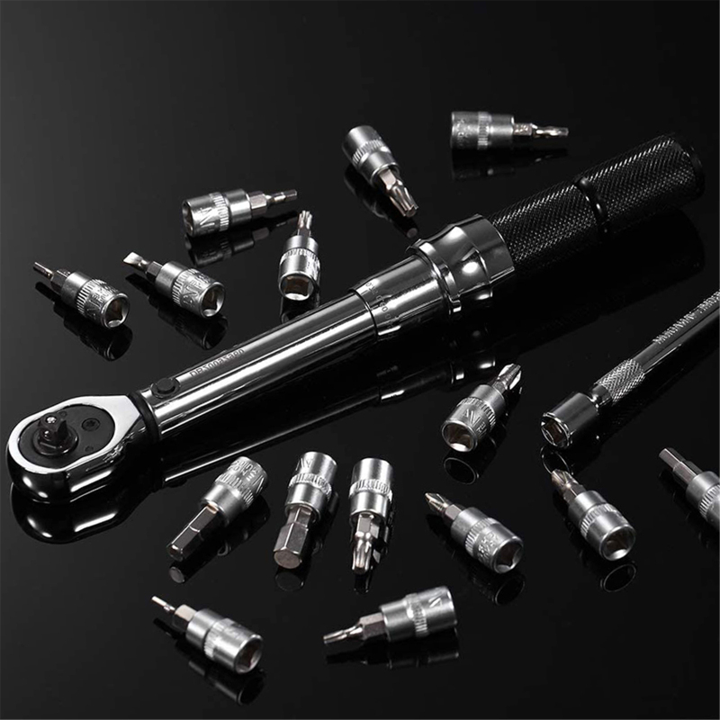 18 шт. динамометрический ключ для велосипеда, 1/4 дюйма, 2-20 нм, инструмент для ремонта крутящего момента, прецизионный инструмент, включающий шестигранные и торцевые биты для шоссейного велосипеда, MTB