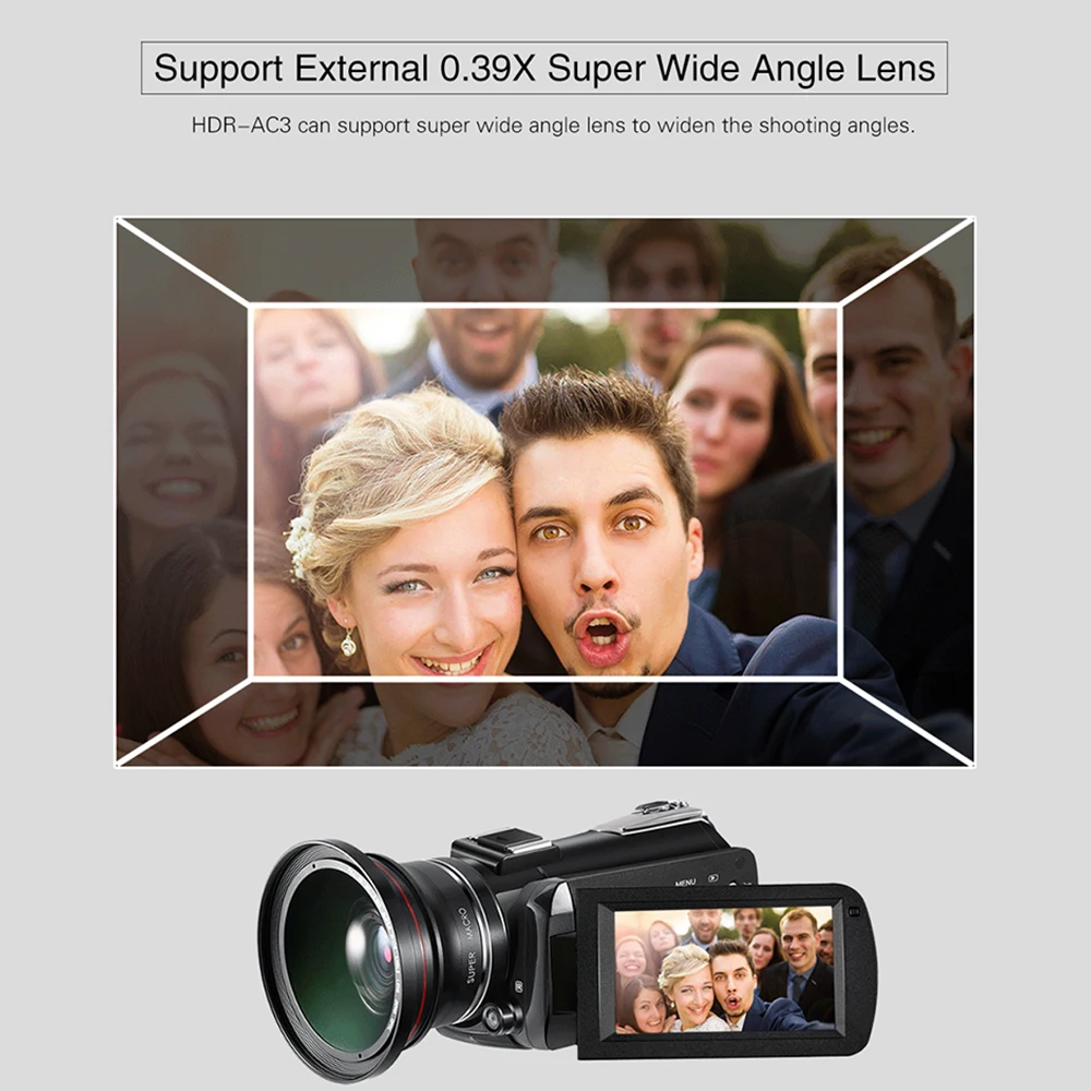 -Принимает для Sony 13MP высокой чувствительности CMOS сенсор, макс. 4K 24fps ultra HD видео разрешение и 24MP (интерполяция) Супер четкое разрешение изображения, 30X цифровой зум, и с внутренним микрофоном и динамиком. -Поддержка профессиональной ИК записи ночного видения, он может выполнять естественное и высокое разрешение изображения в темной среде, включив ИК-светильник и светодиодный светильник. -Примените технологию сжатия и преобразования DAR видео для сжатия видео файла разрешения 3840*2160(16:9) в 2880*2160(4:3) для хранения, И автоматически преобразует его в разрешение 4K при воспроизведении на экране телевизора 4K. -Поддержка Wi-Fi подключения, после подключения к камере через WiFi, видео и фото можно управлять и делиться с помощью приложения LzxViewer на смартфоне; он может быть подключен к компьютеру и использован в качестве камеры ПК для потоковой передачи. -С креплением для горячего башмака для подключения внешнего микрофона/светодиодный светильник для видеосъемки и резьбой 1/4 "для крепления камеры на штатив; Поставляется с пультом дистанционного управления для удобного использования (макс. 10 метров Диапазон передачи). -Больше функций: поддерживает максимум. 128 Гб внешней карты памяти SD (рекомендуем класс 10 или выше); HD мультимедийный интерфейс выхода; 3,1 дюймов ЖК-дисплей сенсорного экрана; Поддерживает, Автоспуск, настройка баланса белого, захвата улыбки; С 2 перезаряжаемыми литий-ионными батареями. -Поставляется с одним 0.39X супер широкоугольным объективом, чтобы расширить углы съемки, один внешний микрофон для активного отдыха/конференции/обучения записи, внешняя бленда объектива, чтобы избежать бродячий светильник, И держатель камеры для более стабильной записи видео.