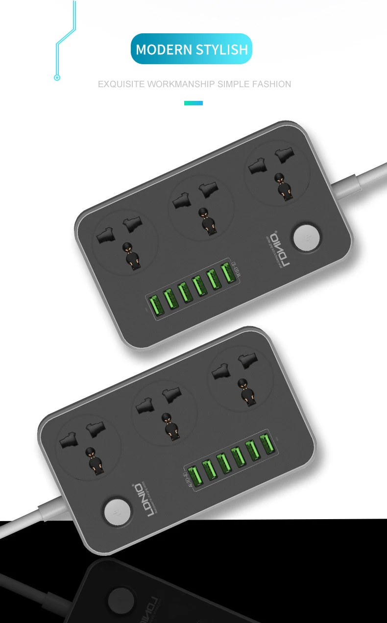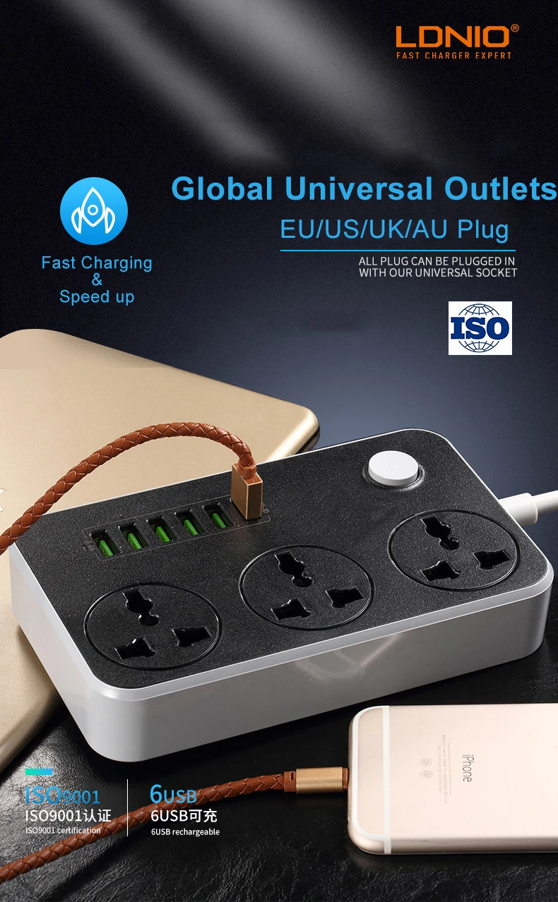 LDNIO выключатель питания 2 м кабель Универсальные Розетки 6 USB 3 розетки стандартный разъем электрическое гнездо для шнура удлинителя сети ЕС/США