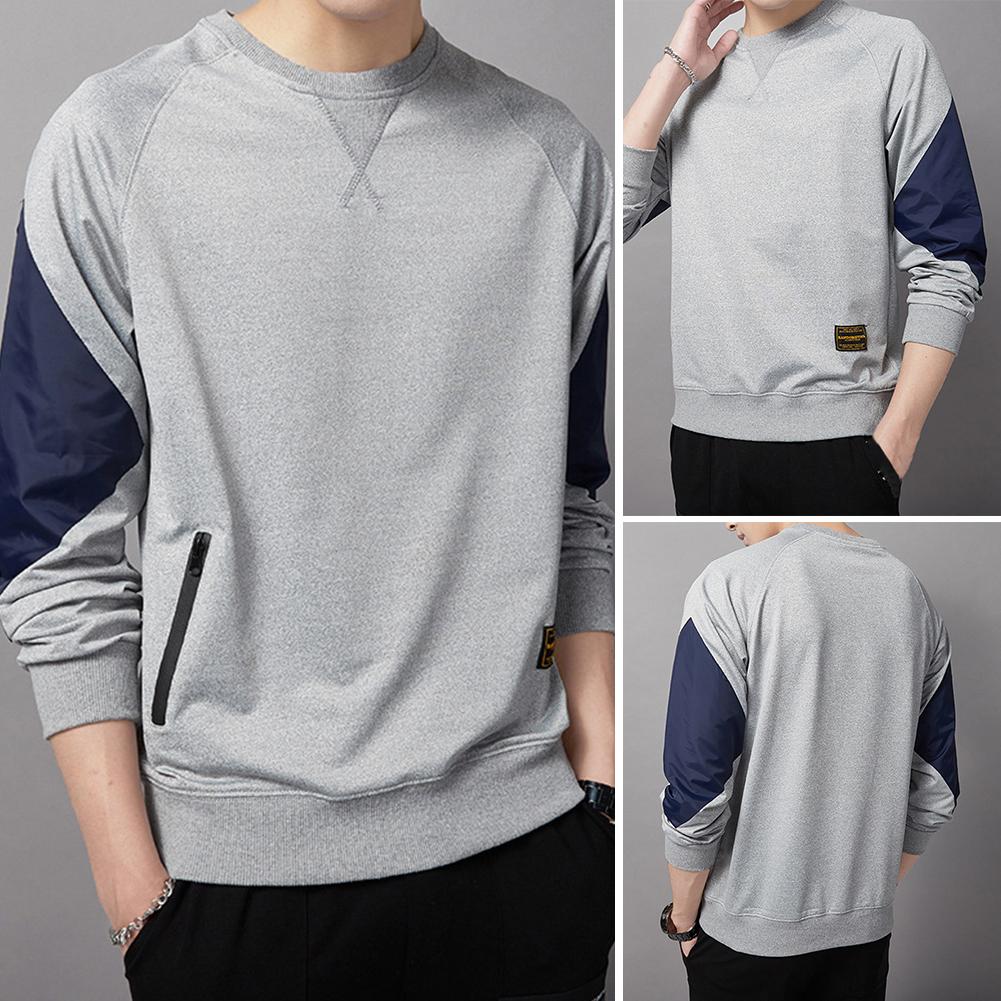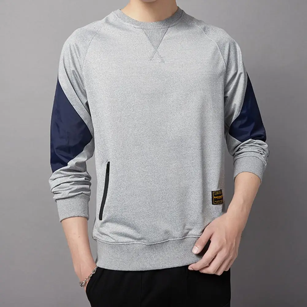 Мужская Повседневная Свободная Толстовка с длинными рукавами, круглым вырезом и карманом на молнии