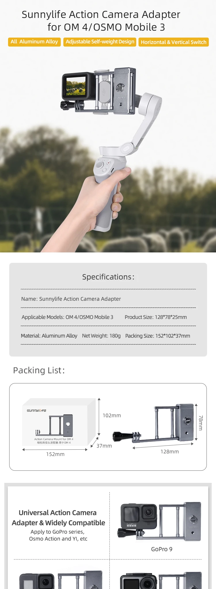 -Универсальный адаптер для экшн-камеры. Подходит для серии GoPro, Osmo Action и YI,