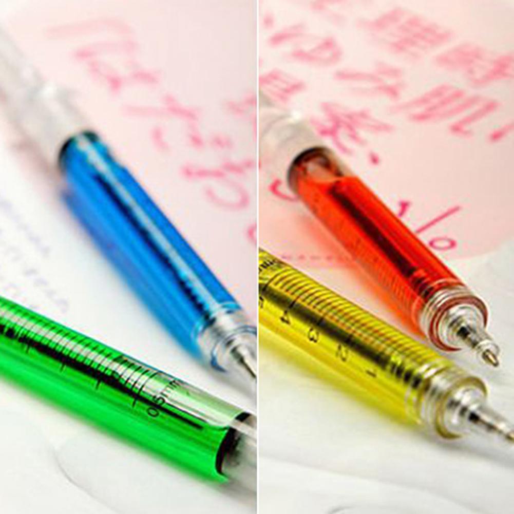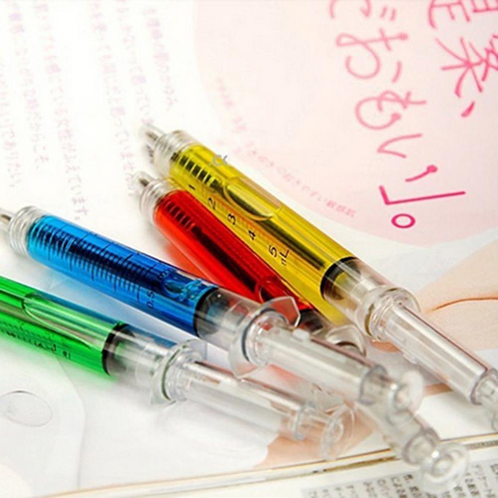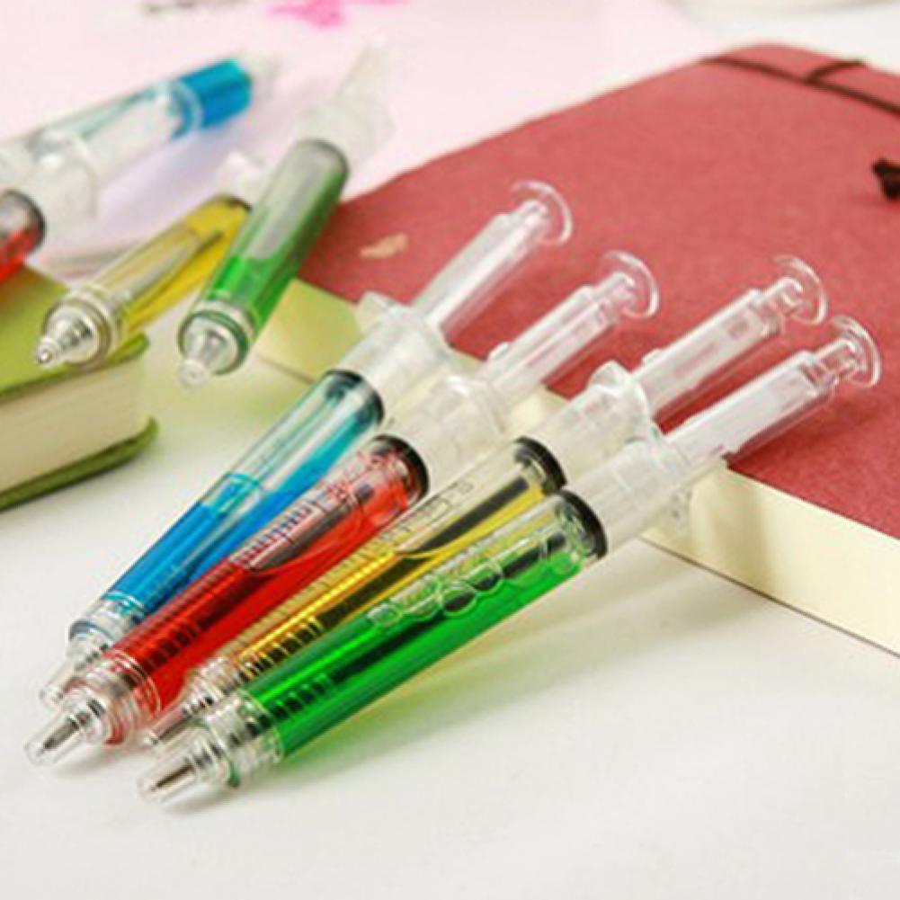 Заполненная жидкостью (без запаха и запаха), шариковые ручки в форме шприца.