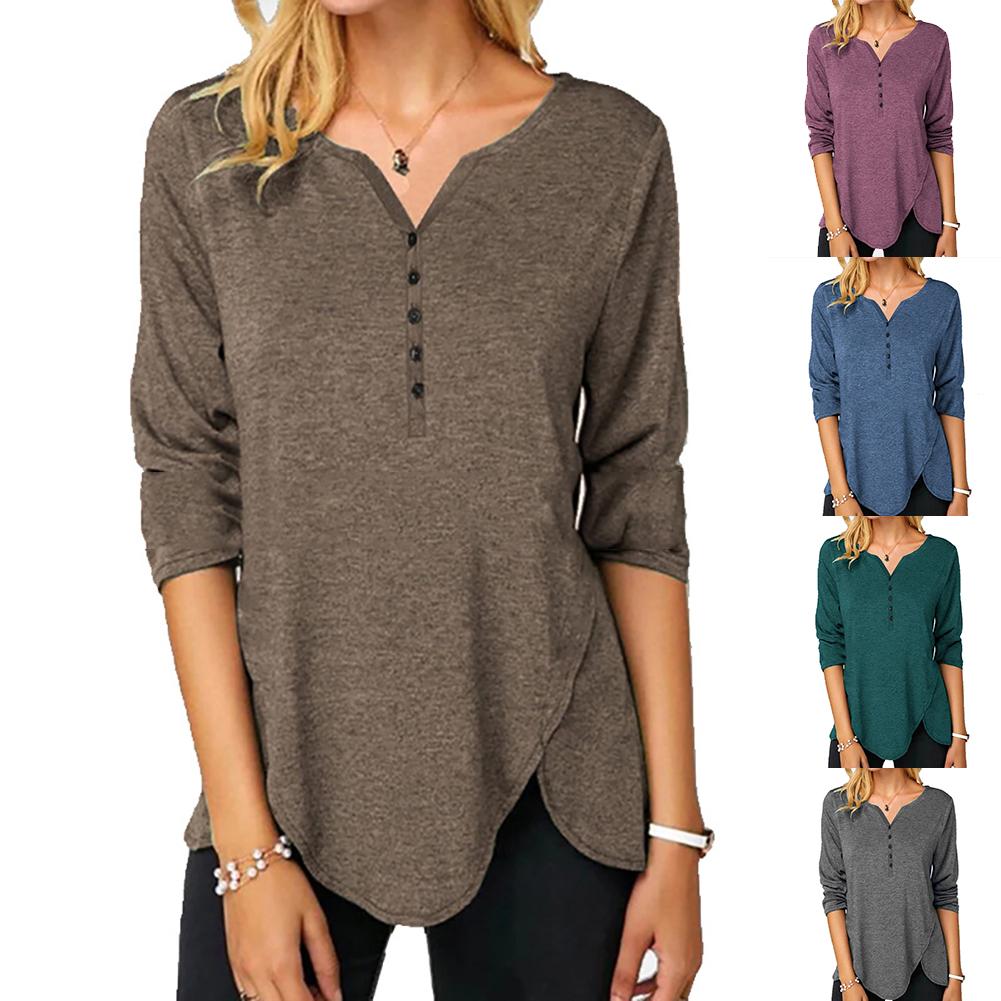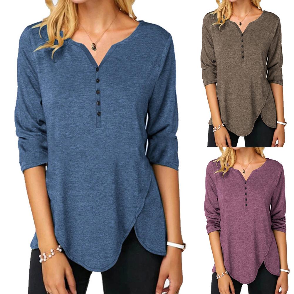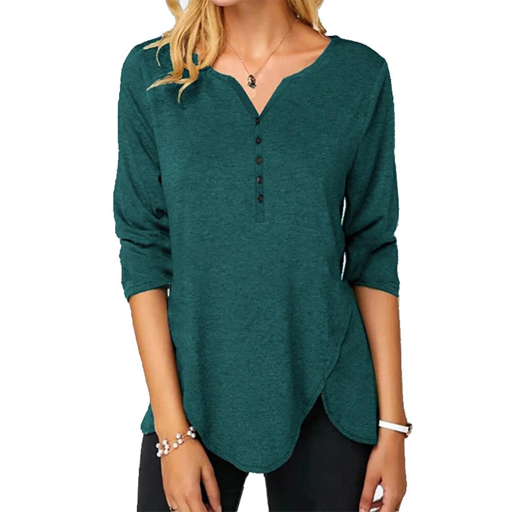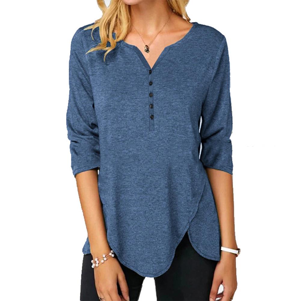 Пуговицы и асимметричный подол делают эту блузку модной.