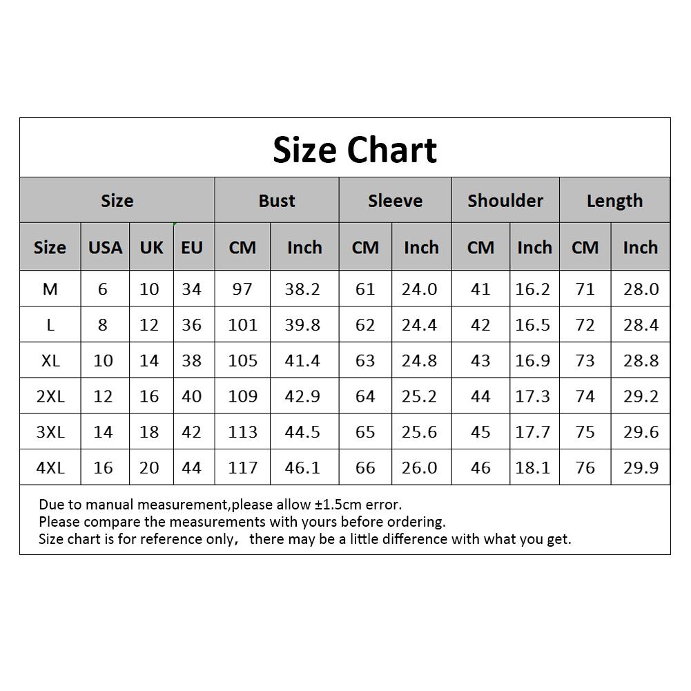 [Наш Размер 4XL] Обхват груди: 117 см/46,1 ", ширина плеч: 46 см/18,1", длина рукава: 66 см/26 ", Длина: 76 см/29,9" (прибл.)