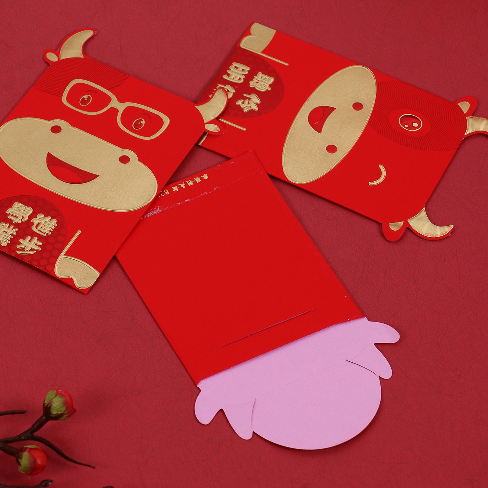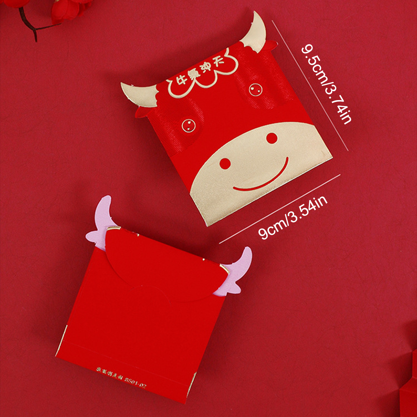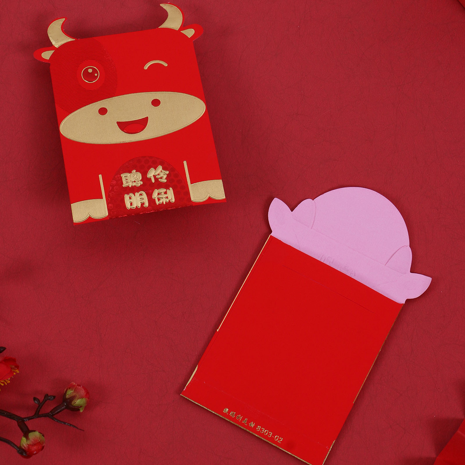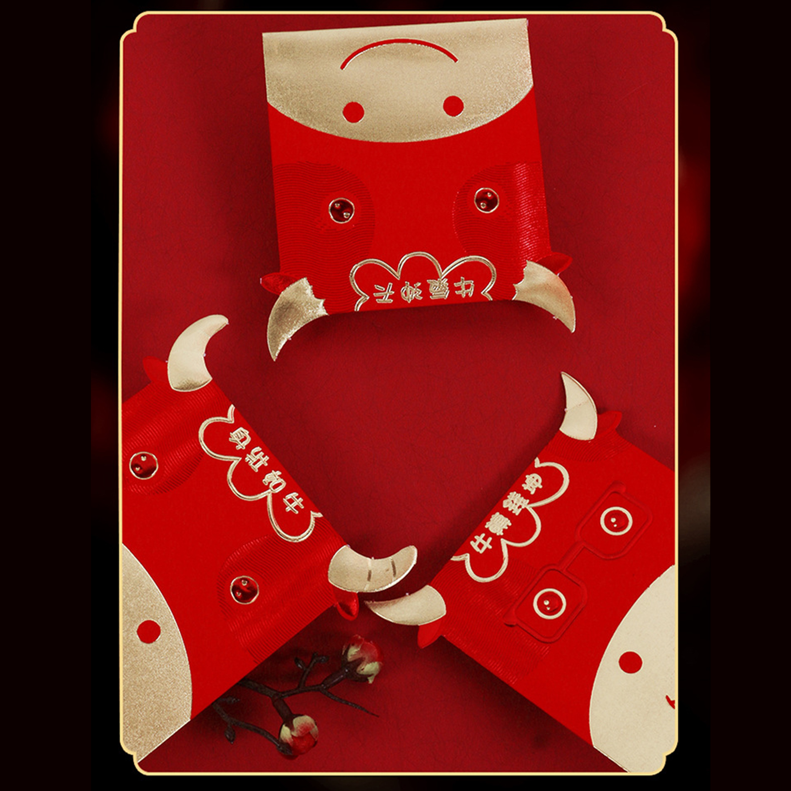 3. Красные карманы используют яркие цвета и милые рисунки коровы, чтобы добавить сильную праздничную атмосферу и подчеркнуть новую атмосферу года быка.