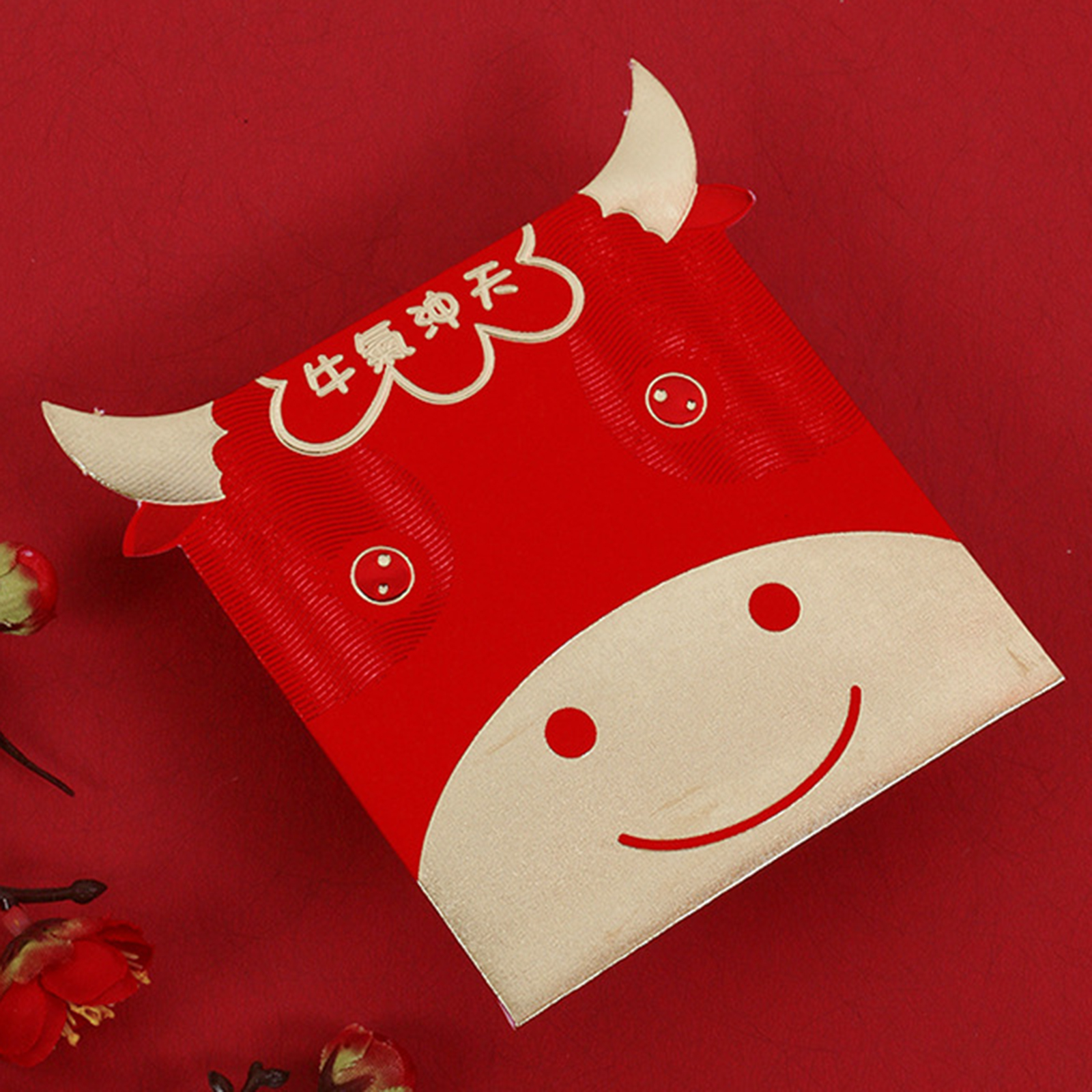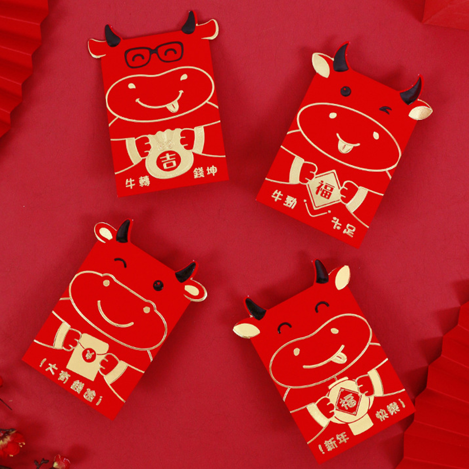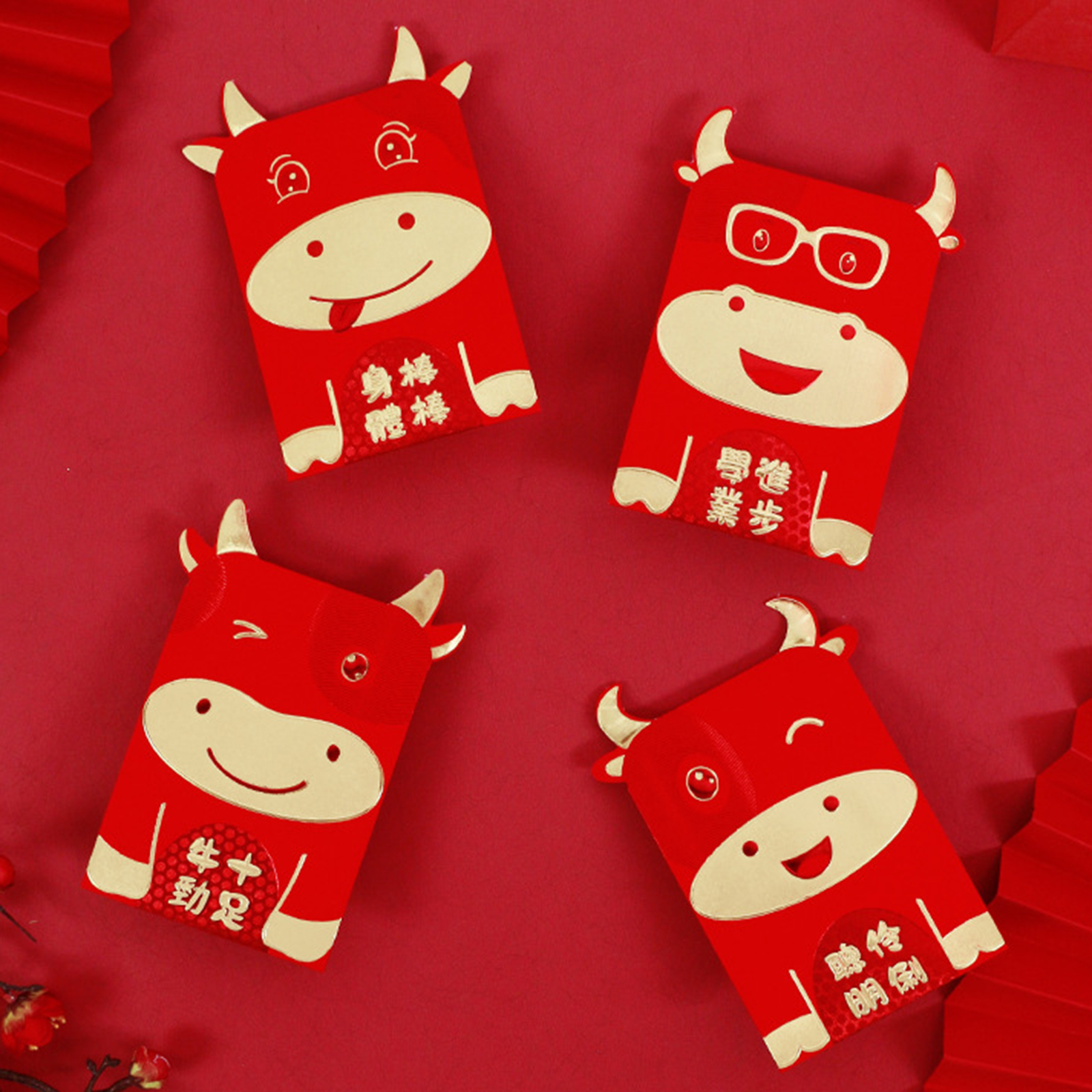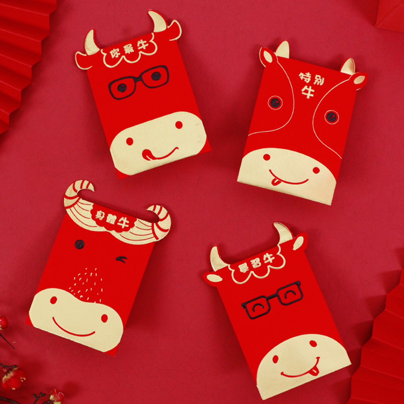 3. Красные карманы используют яркие цвета и милые рисунки коровы, чтобы добавить сильную праздничную атмосферу и подчеркнуть новую атмосферу года быка.