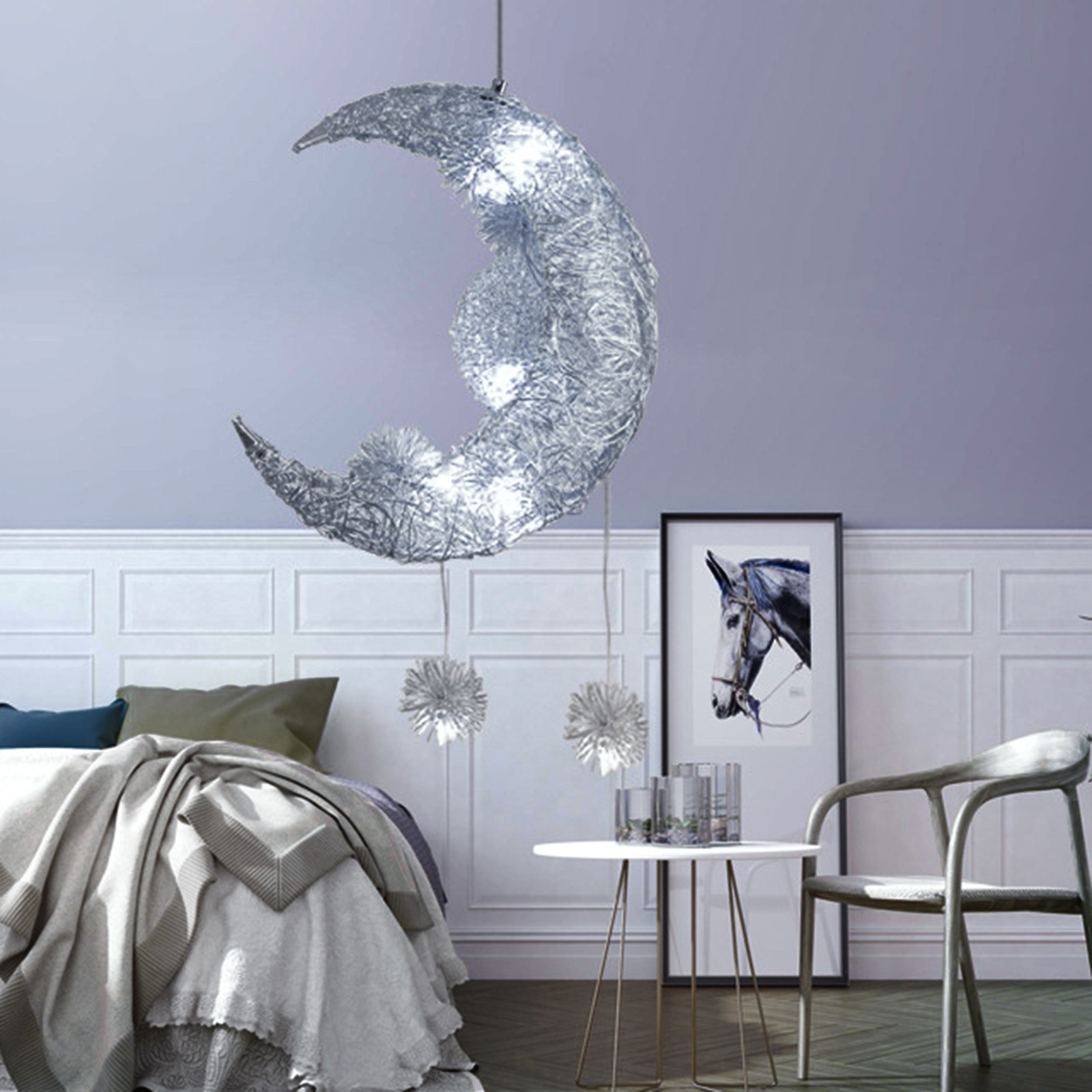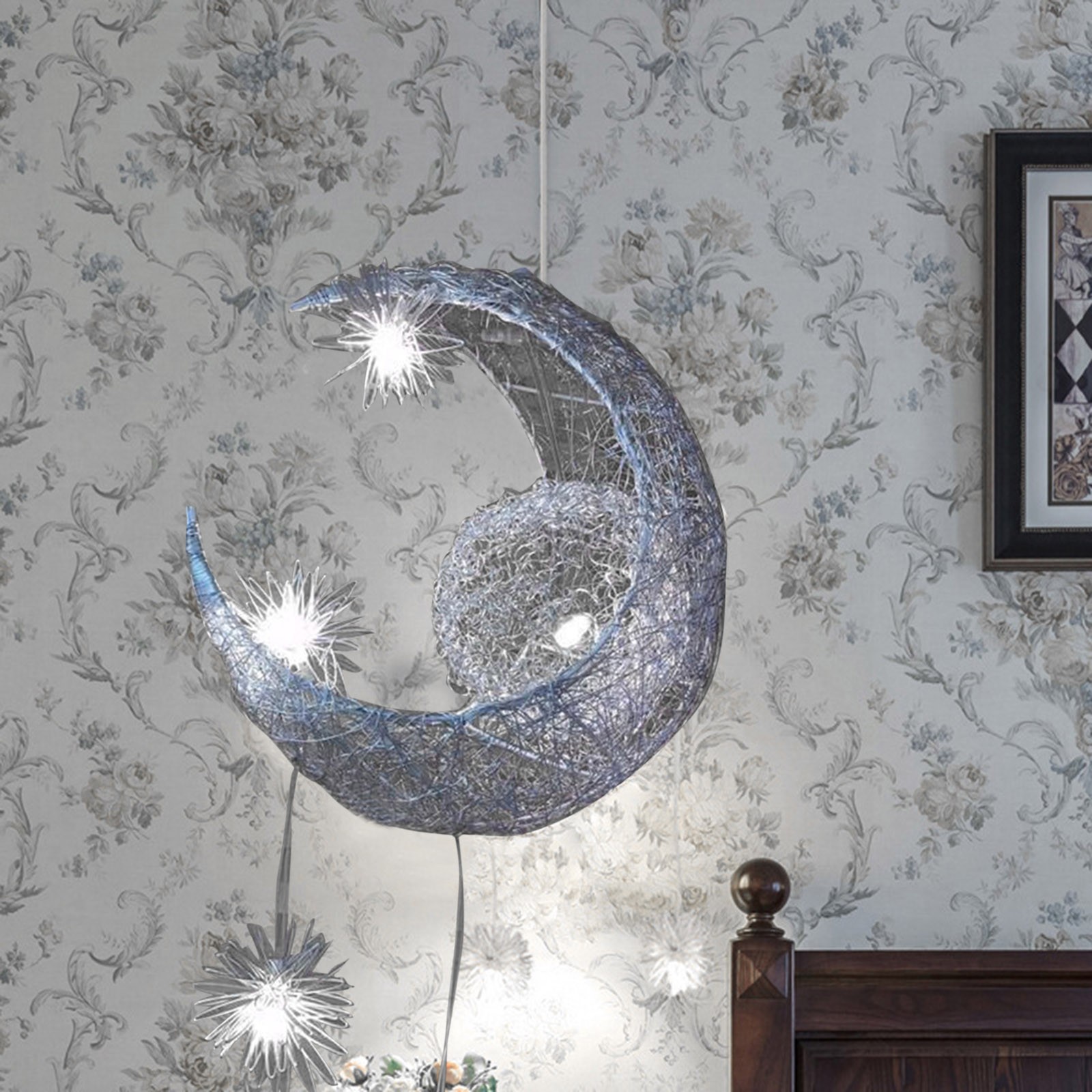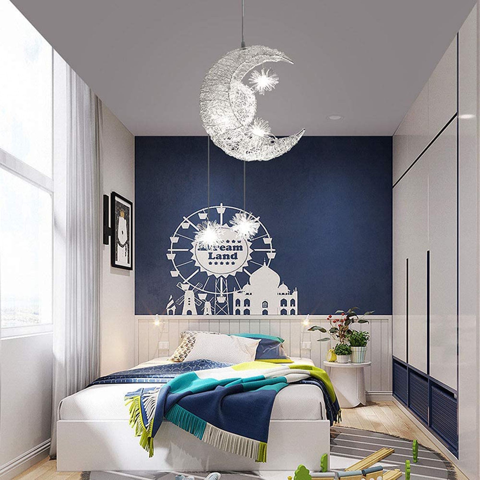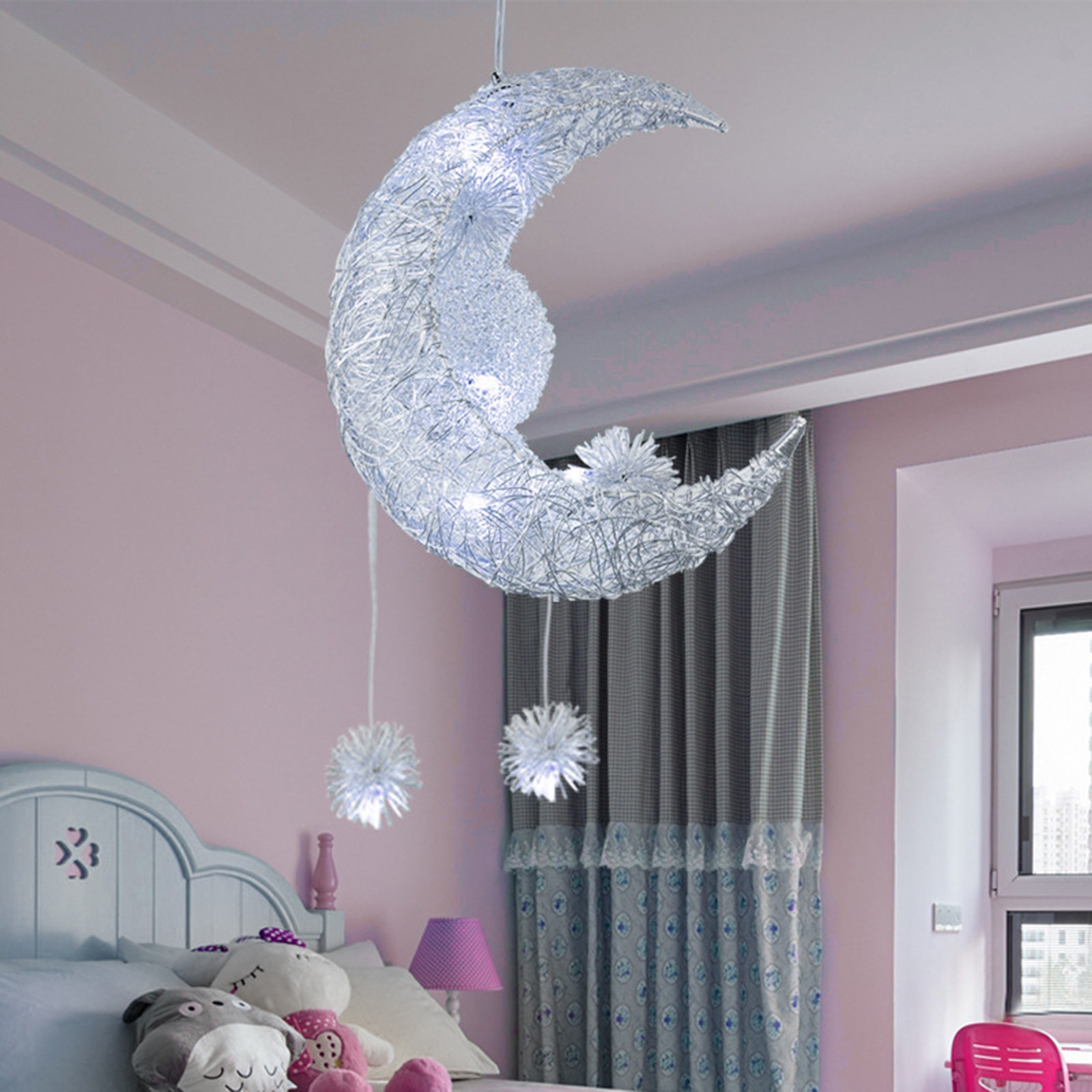 Светодиодная Люстра для детской спальни с Луной и звездой (холодный белый)