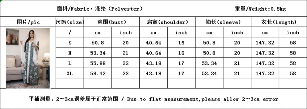 S: плечо 40 см, обхват груди 100 см, рукав 50 см, длина 147 см