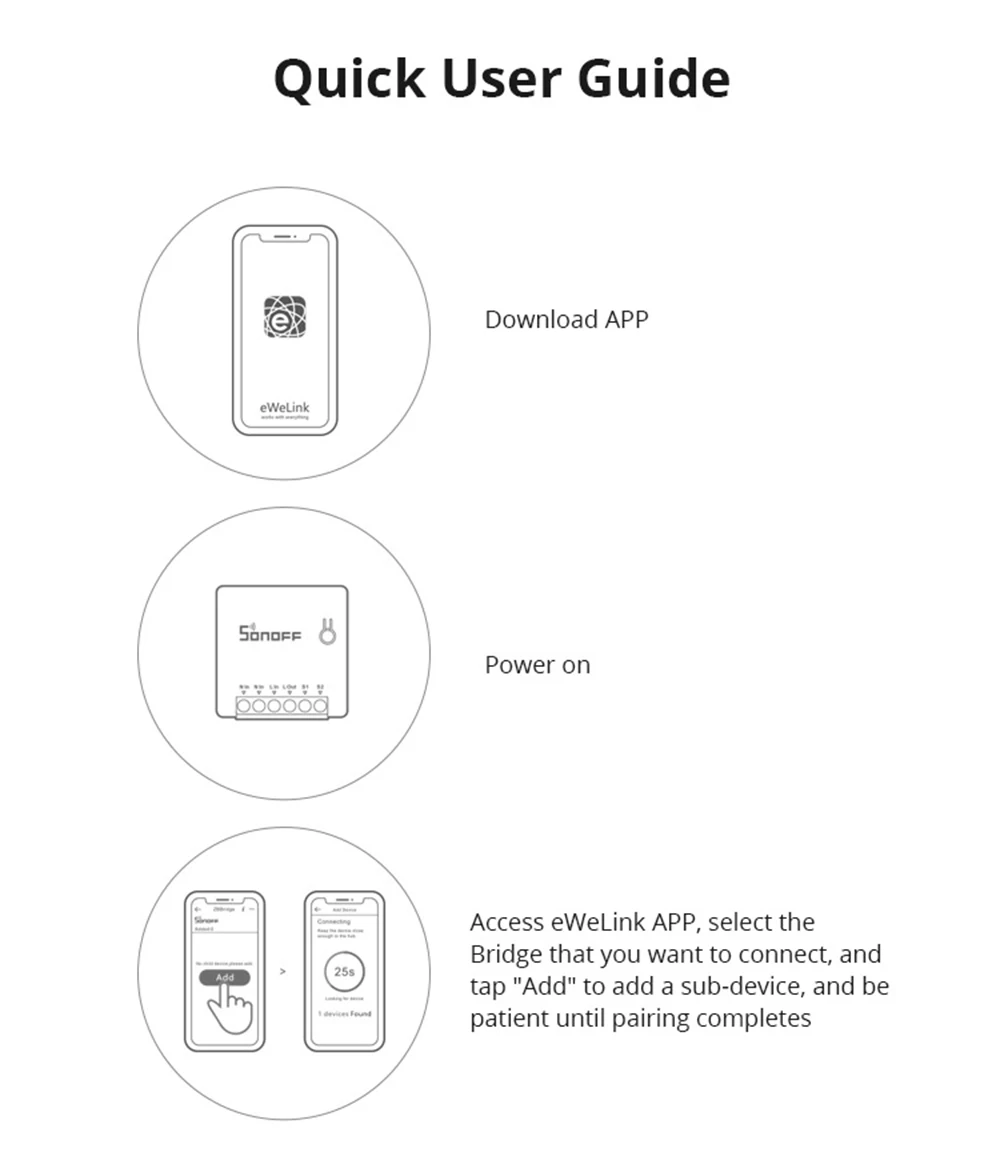 【Работает с ZigBee hub】после подключения ZBMINI к SONOFF ZBBridge, вы можете управлять им через приложение eWeLink для реализации дистанционного управления, синхронизации, управления разделением, умных сцен и других функций.