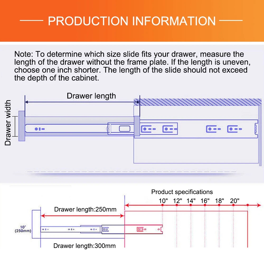 Примечание: чтобы определить, какой размер скольжения подходит вашему ящику, Измерьте длину ящика без рамки пластины. Если длина неравномерная, выберите на один дюйм короче. Длина горки не должна превышать глубину шкафа.