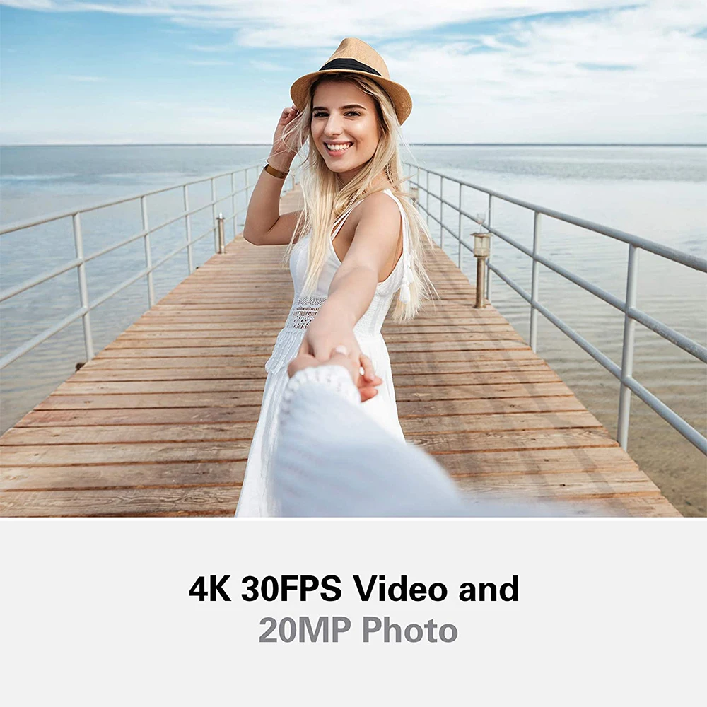 4K30FPS видео/ 20 Мп фото/ Электронная стабилизация изображения 2,0/ Угол обзора 124 °/ 5,0 ГГц Wi-Fi/ Видео/Циклическая запись/ Медленное движение/ Свободные руки/ Магнитный Корпус