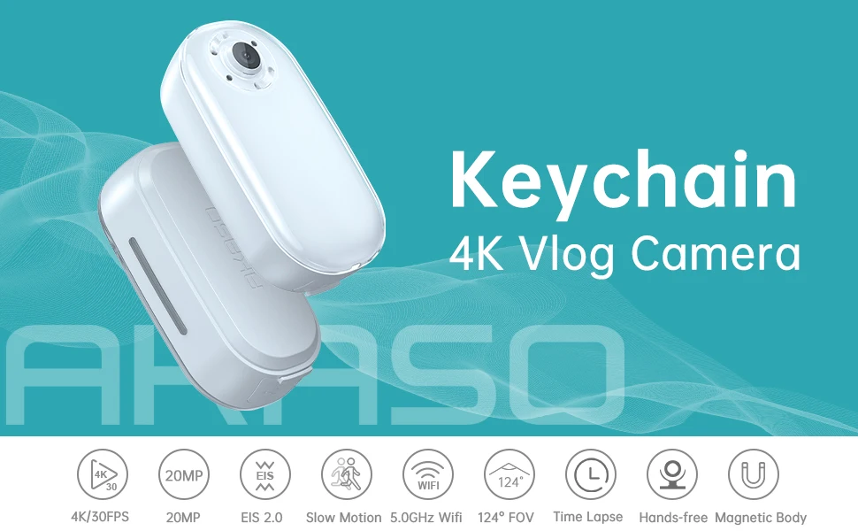 AKASO брелок для тела Экшн-камера 4K 30FPS 20MP с EIS 2,0 60min Запись видео медленное движение Hands-Free Мини Vlogging камера