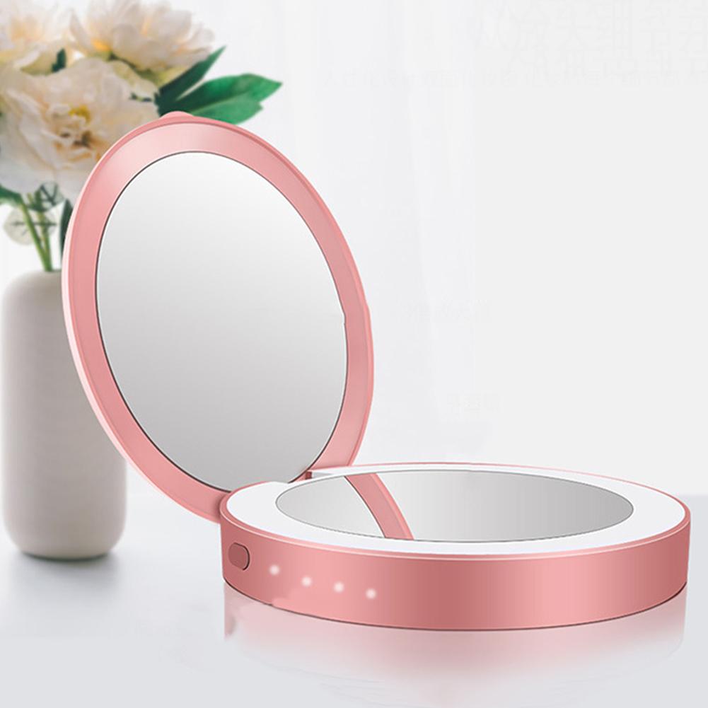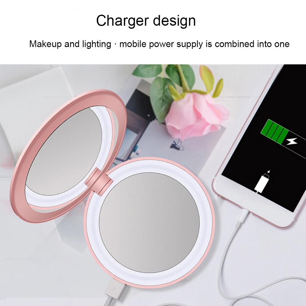 Портативный мини светодиодный светильник, три раза освещающее складное зеркало для макияжа