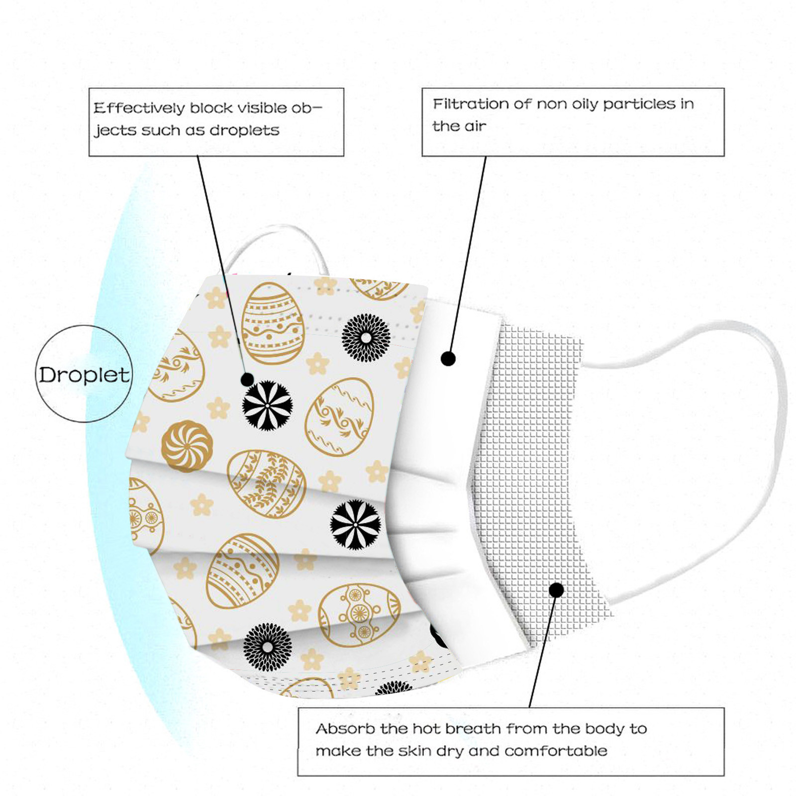 В3-слойный гидросплетенная тканьОдноразовая маска изготовлена из3-слойный гидросплетенная тканьМатериал, он Безопасен и безопасен для использования. Дышащий материал и милый Узоры, которые делают его полезным и модным. Специальный3-слойный гидросплетенная тканьДизайн, обеспечивает некоторую защиту от пыли, автомобильных выхлопных газов, Пыльца и т. д. эластичная Ушная петля, легко носить и не давит на уши. Маникюрный салон или любые другие области, где может потребоваться защита