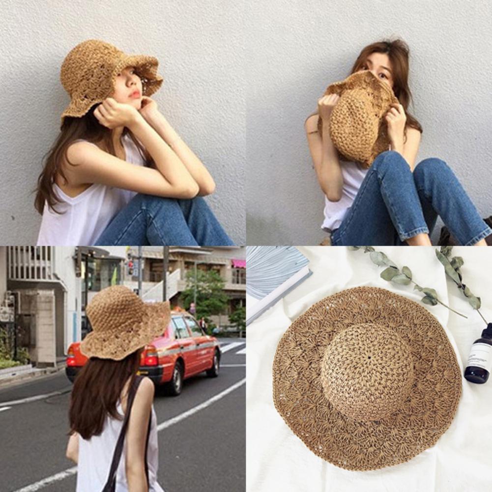 Женская Складная соломенная шляпа ручной работы с широкими полями, Солнцезащитная Шляпа Пляжная Панама