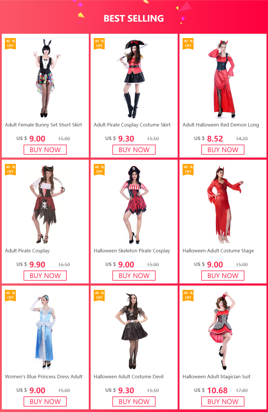 Играйте в продукт.Наши ролевые игровые товары в основном включают вечерние костюмы и анимационные вдохновленные Ролевые костюмы для игр и париков (включая популярную анимацию, комиксы, мультфильмы, традиционные сказки, персонажи фильмов и игр, а также традиционные, вечерние и праздничные темы на Хэллоуин и Рождество). Мы успешно запустили более 3000 видов одежды, 3000 видов париков и 5000 видов рождественских изделий на рынке.
