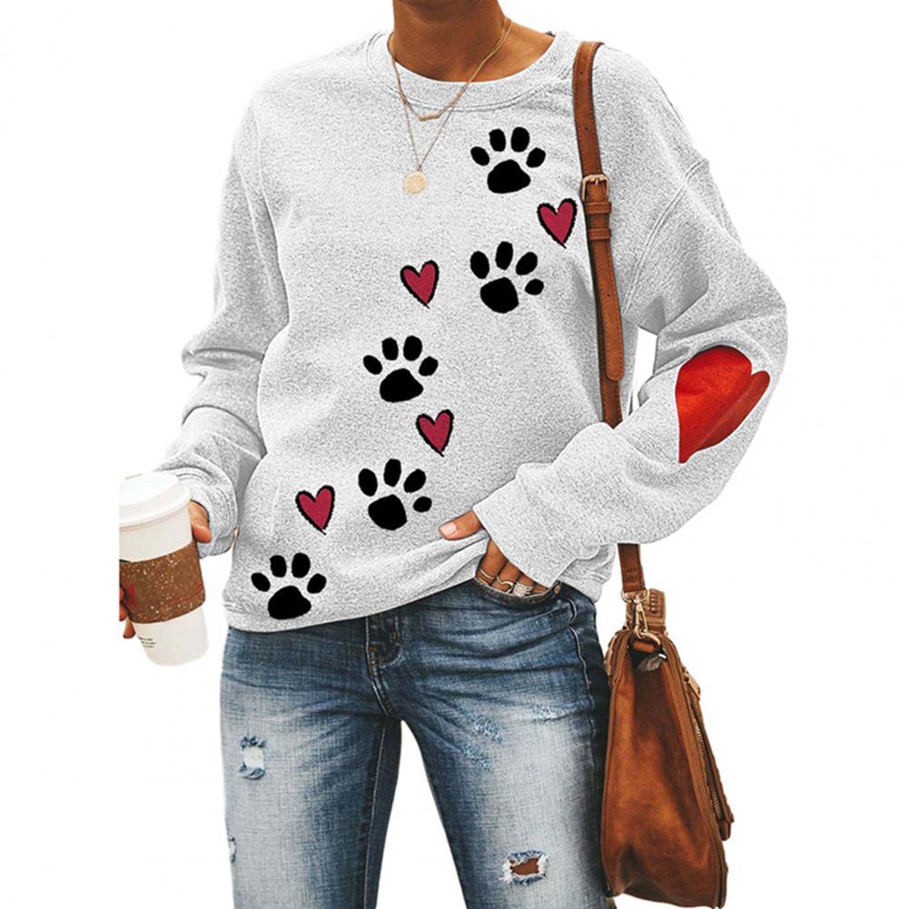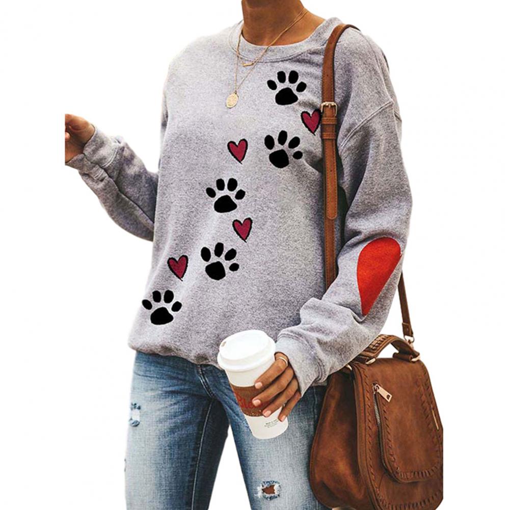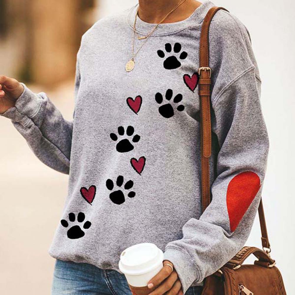 Модная женская осенняя Толстовка с принтом собак Paw Love, блузка с длинным рукавом, пуловер