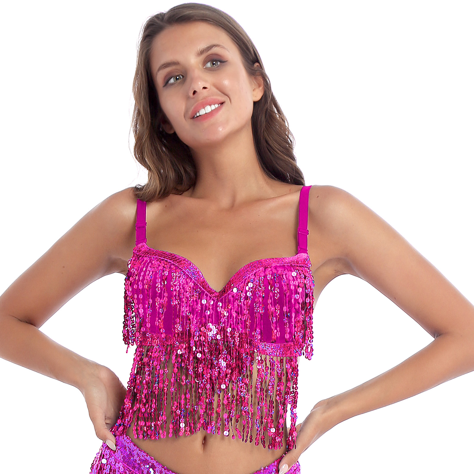 Женский бюстгальтер с блестками и кисточками на косточках, топ для ночного клуба, выступления на сцене, латинский джаз, костюм для танца живота.
