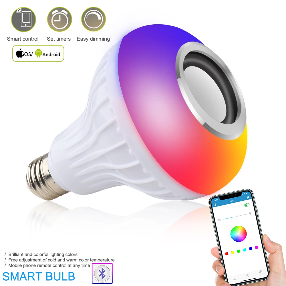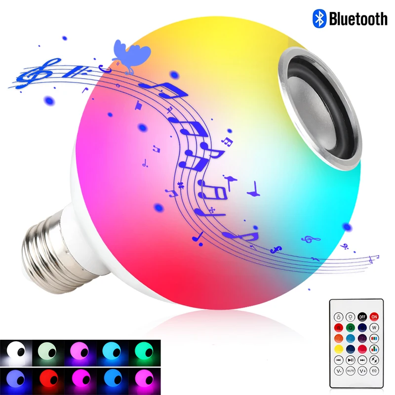 Blub Smart E27 RGB белый Bluetooth динамик светодиодный светильник для воспроизведения музыки с регулируемой яркостью беспроводной светодиодный светильник с дистанционным управлением с 24 клавишами