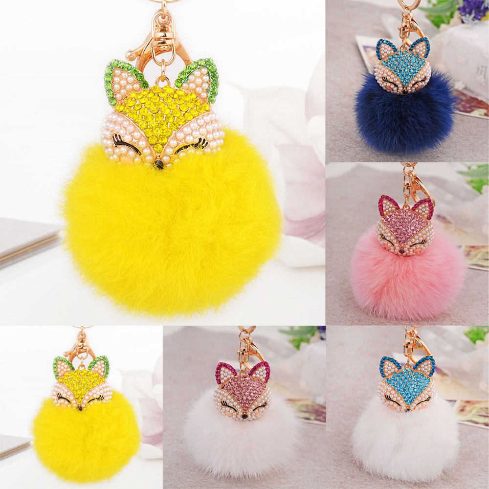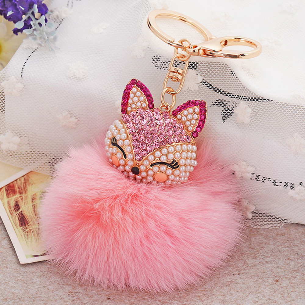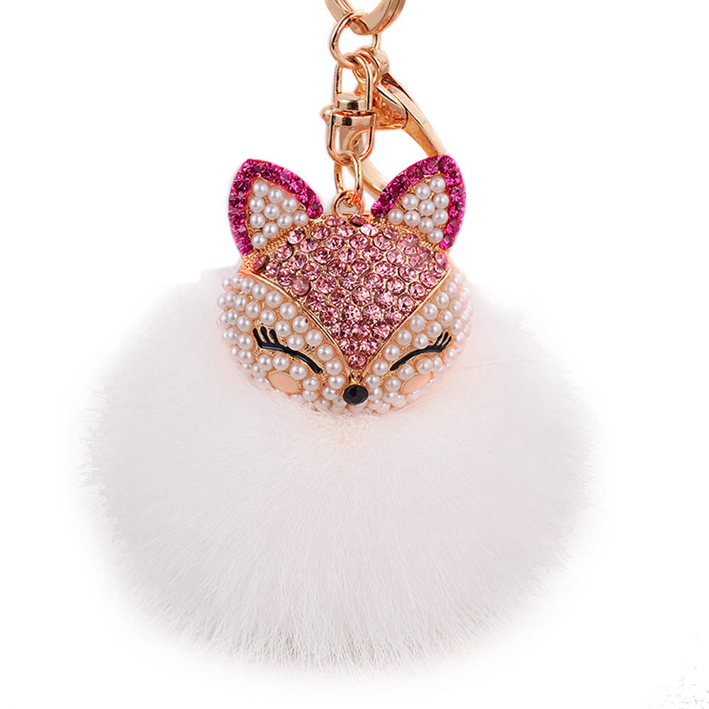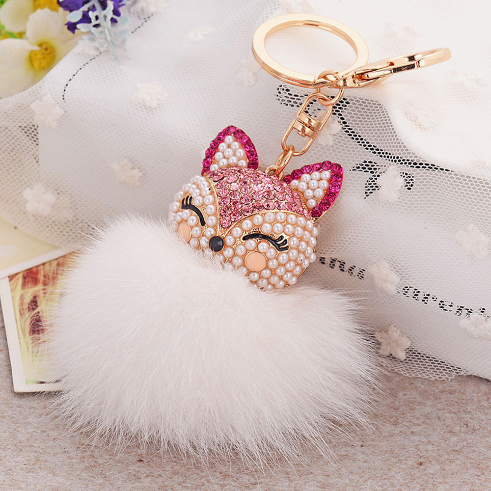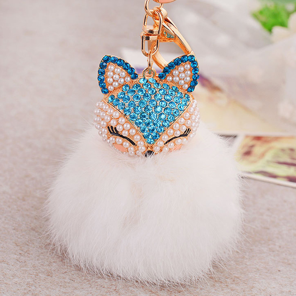 Шар с искусственным лисьим головой инкрустация жемчугом стразы брелок
