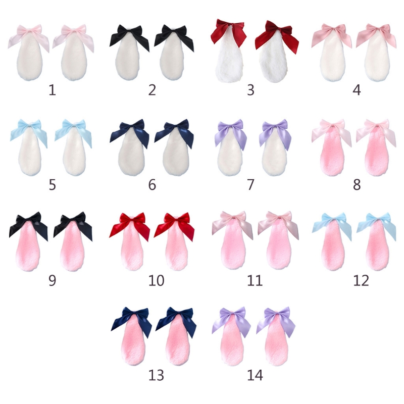 Симпатичный плюшевый кролик заячьи ушки с украшением в виде банта из ленты ярких цветов. Каждое ухо имеет металлический сплав аллигатора клип.
