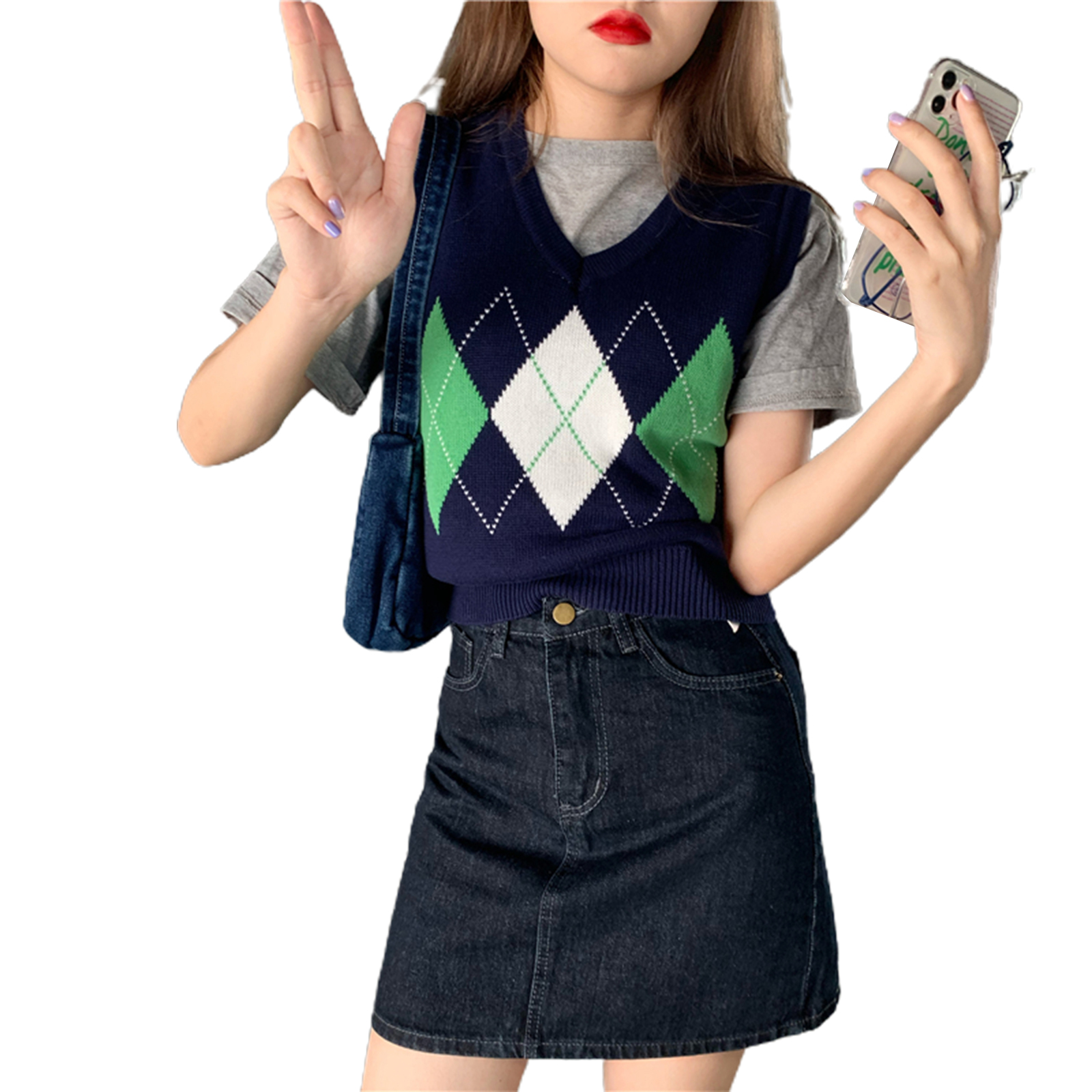 Модный Цветной клетчатый вязаный жилет --- приятный для кожи мягкий и