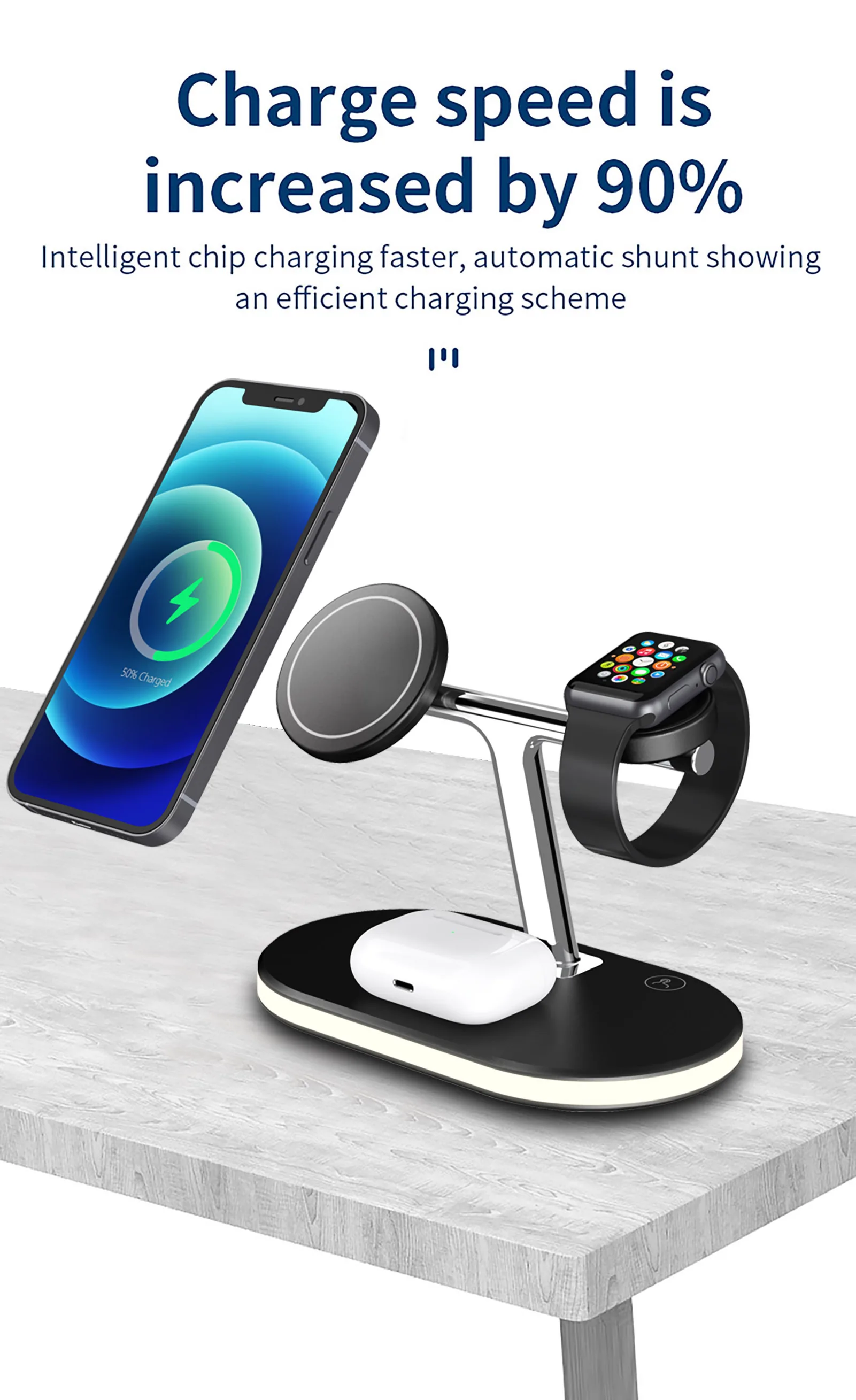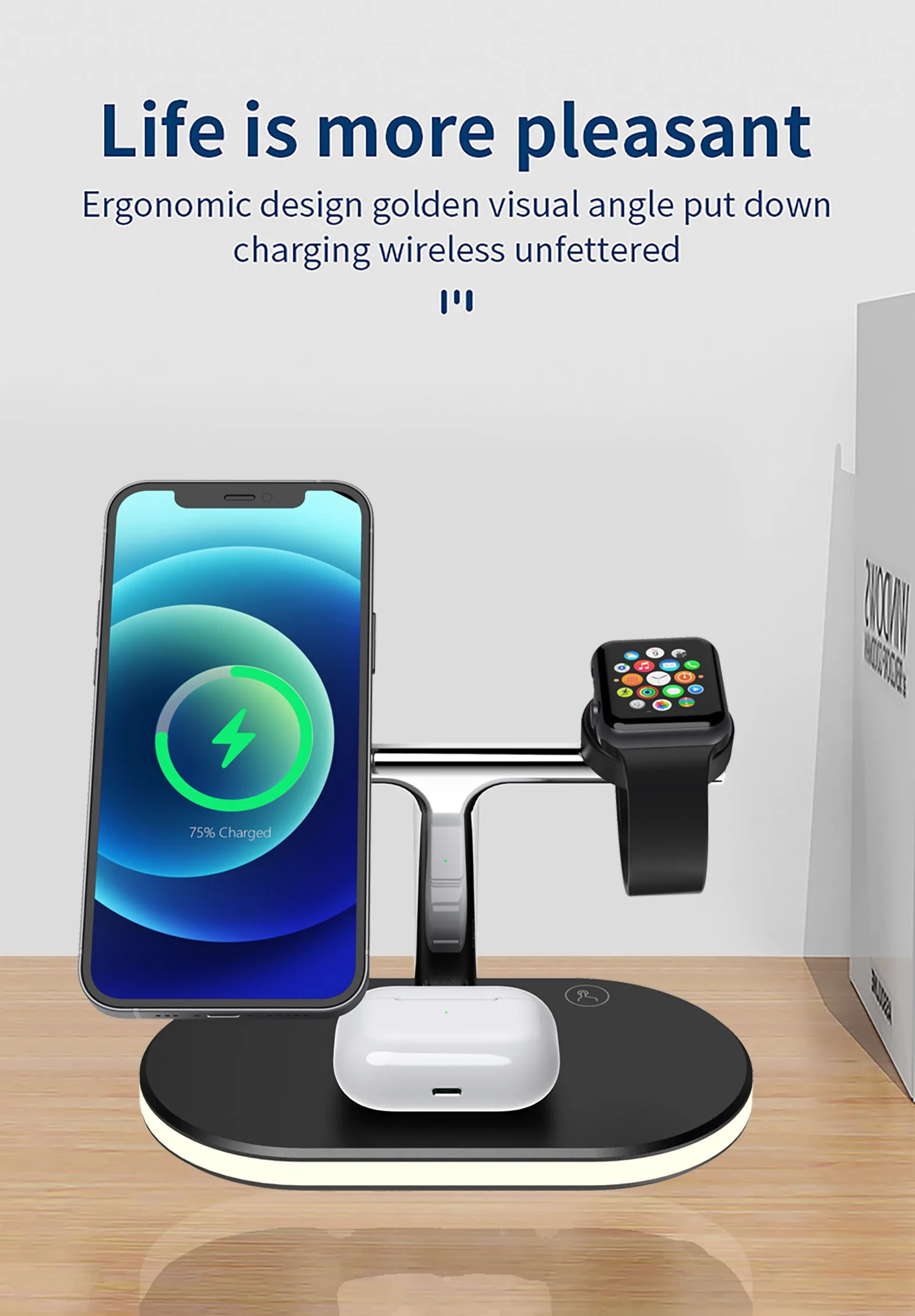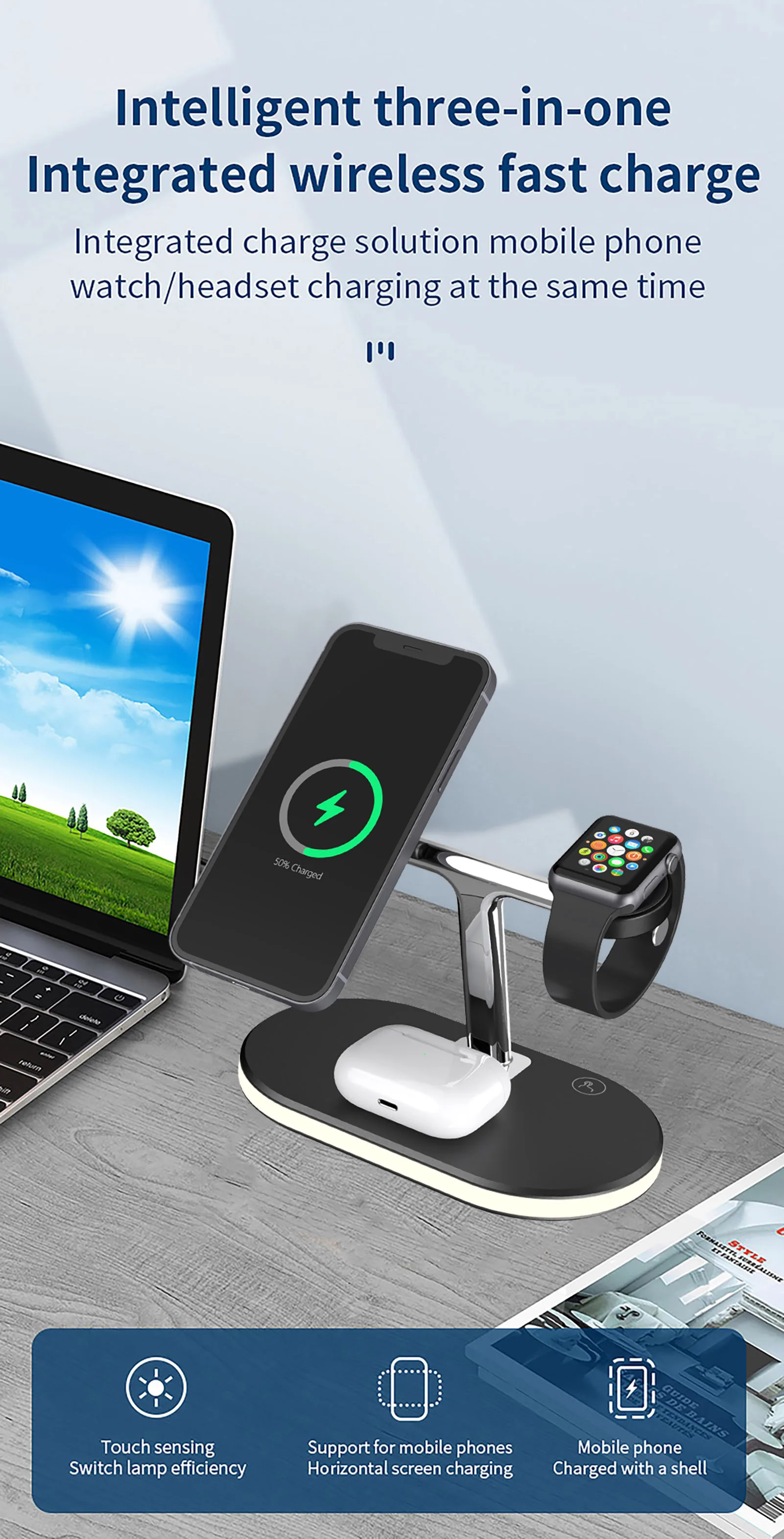 [Беспроводное зарядное устройство «Три в одном» с прикроватной лампой]-это Новейшее беспроводное зарядное устройство с портативной прикроватной лампой. В дополнение к беспроводному зарядному устройству, это также мобильный телефон и прикроватная лампа.