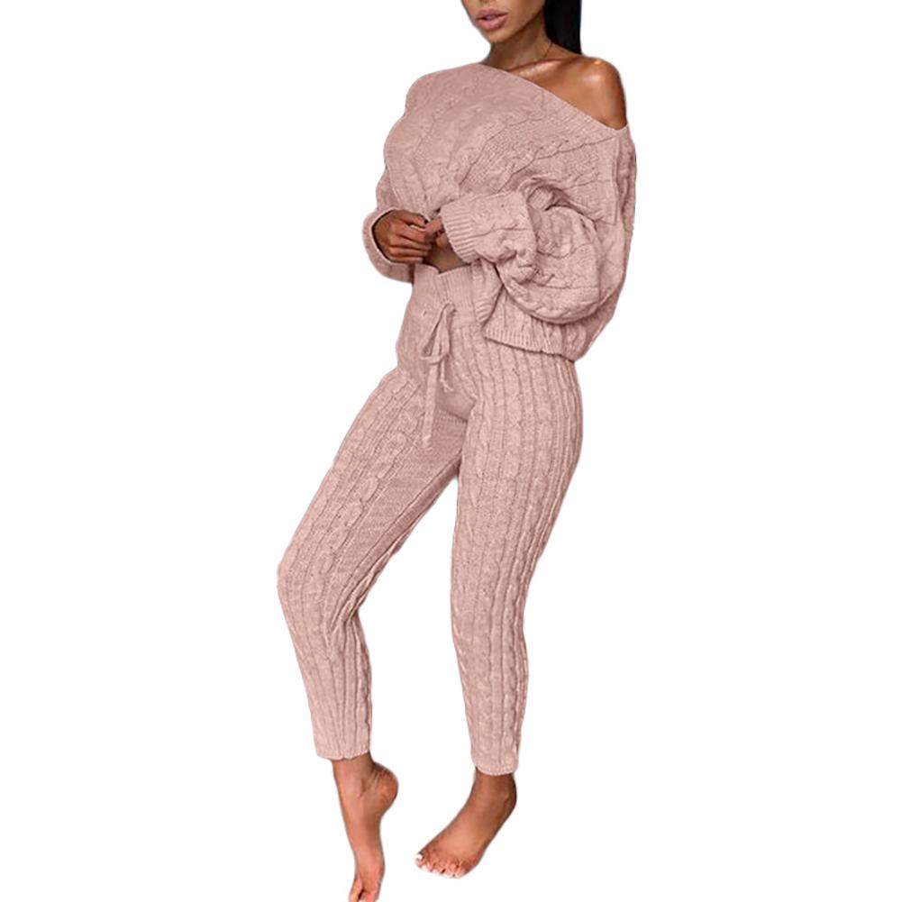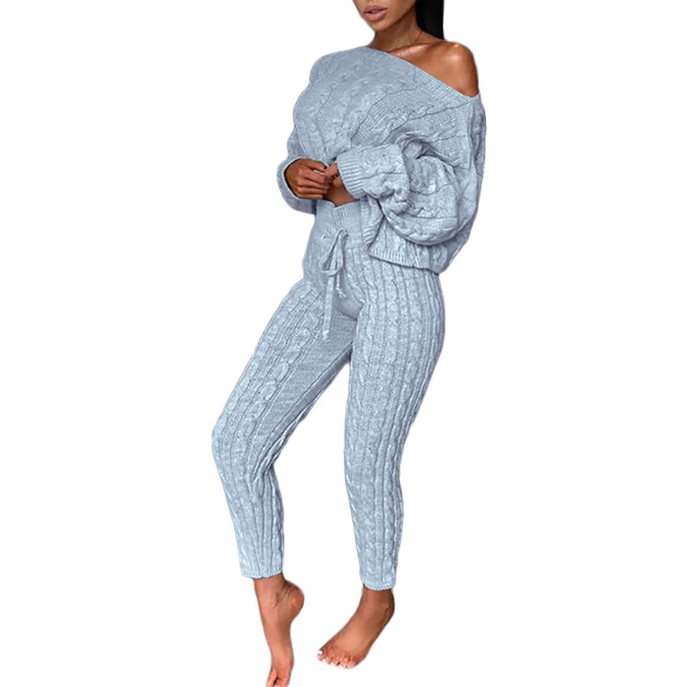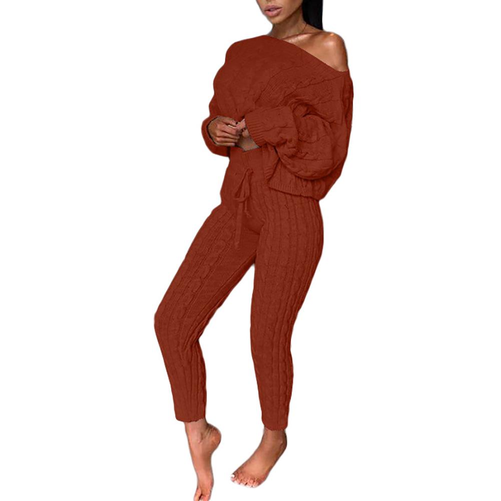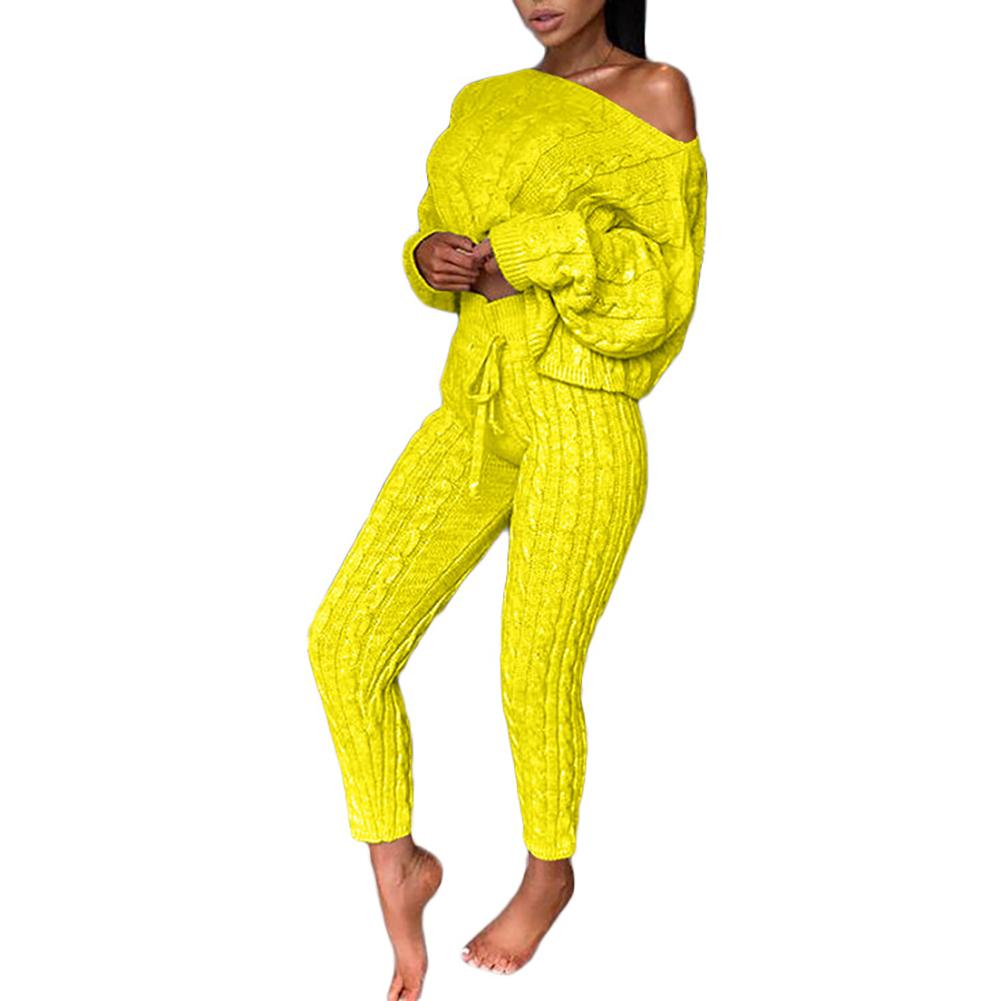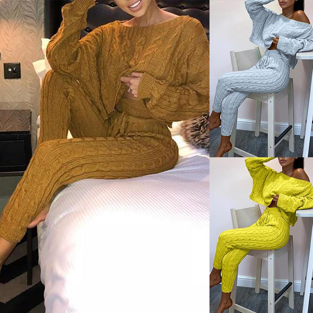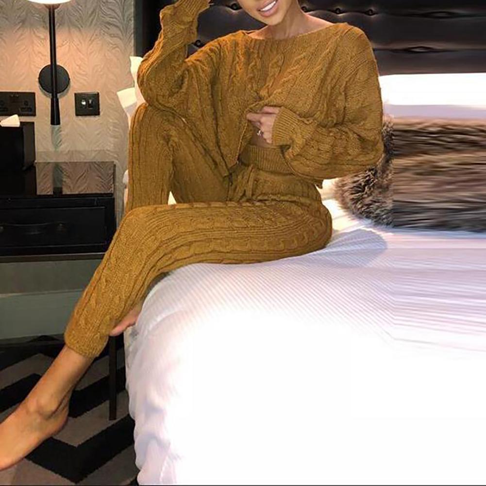 Женский осенне-зимний вязаный комплект из двух предметов, свитер с длинными рукавами и штаны
