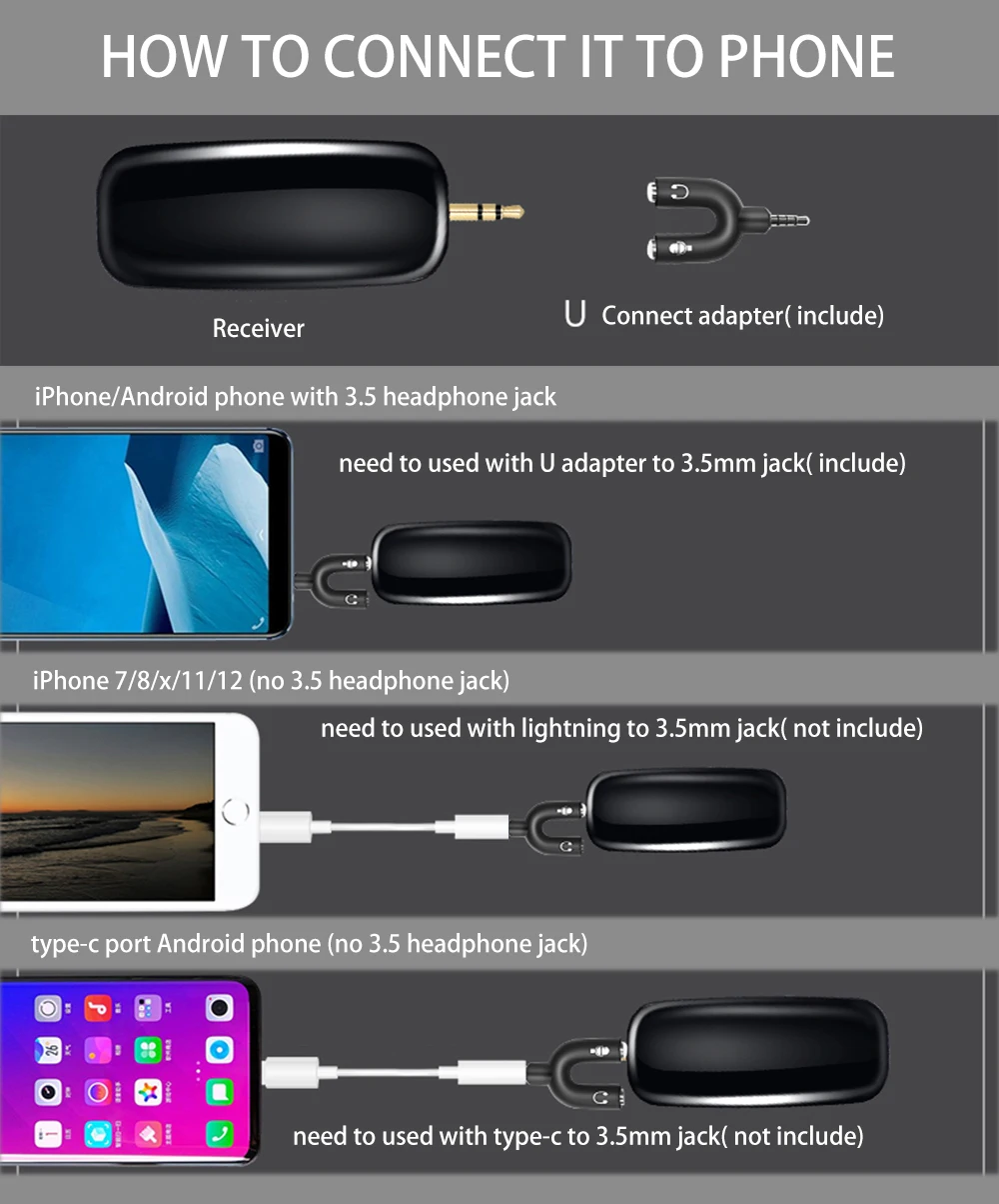 ◆ Простое использование: Попрощайтесь с проводным микрофоном, не нужен бум для гарнитуры. Не давит на голову, помогает лучше произнести речь. Маленький крошечный модный дизайн, подключи и работай. ◆ Высокие технологии: Беспроводная передача УВЧ, непрерывная частота. Автоматическое совпадение. Дальность действия составляет 360 фута в открытом поле без падения частоты на градусов, может работать с ПК/ноутбуком/планшетом/диктофоном/камерой/мультимедиа/смартфоном и т. д. ◆ Простая зарядка и портативность: передатчик и приемник могут заряжаться одновременно. Работает более 6 часов на полной мощности. Миниатюрный металлический зажим позволяет легко прикрепить его к воротнику, галстуку или карману. Мы используем самые современные легкие материалы, чтобы вы почти не заметили микрофон. (Примечание: товар поддерживает только компьютеры и смартфоны, онлайн-чат и запись.) ◆ Plug & Play: Просто подключите приемник к разъему микрофона вашего устройства и включите передатчик и приемник, затем подождите 2 секунды, они подключятся автоматически. Он имеет кнопку включения/выключения питания, и когда питание включено, он подключается сам, поэтому вам не нужно беспокоиться о сопряжении и обо всем остальном.