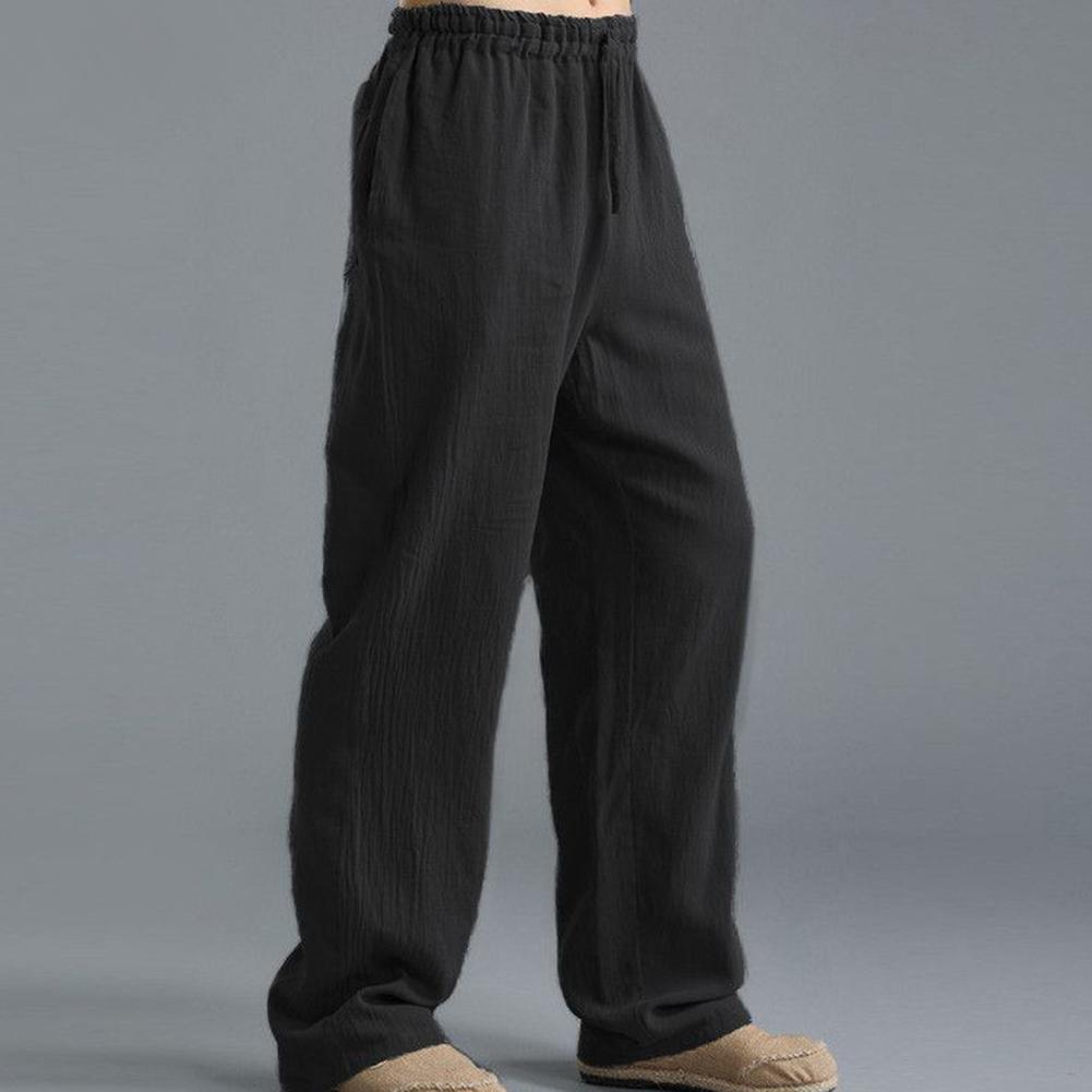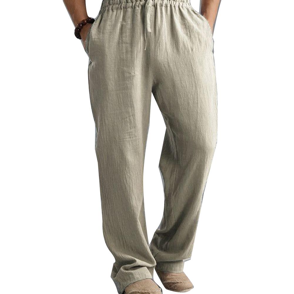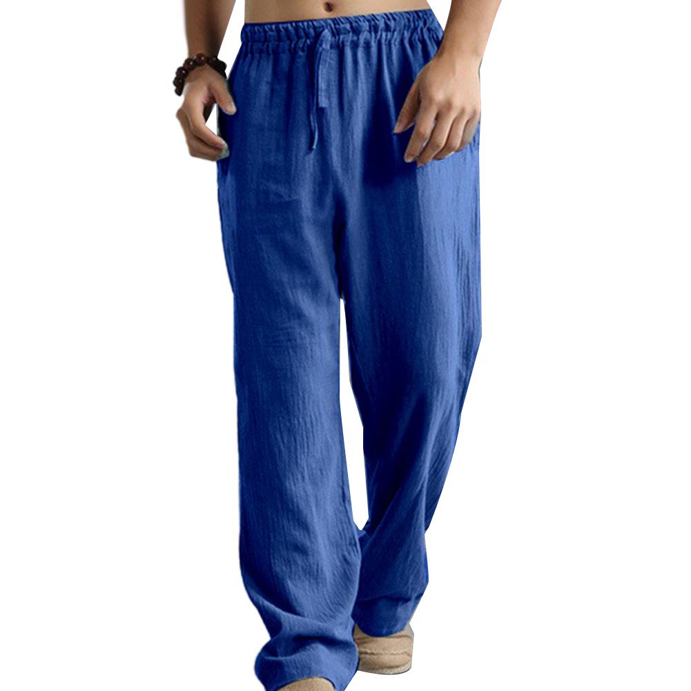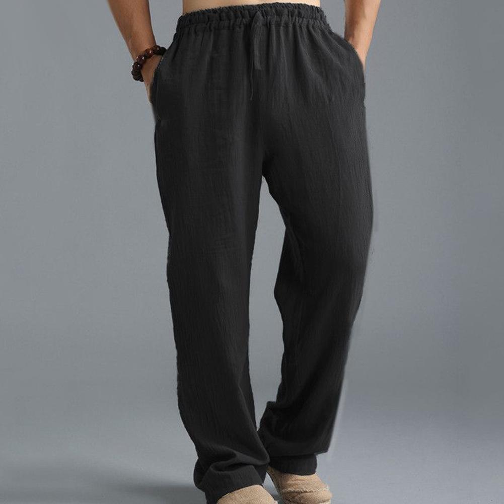 Мужские хлопковые льняные длинные брюки размера плюс с эластичной резинкой на талии, свободные прямые брюки